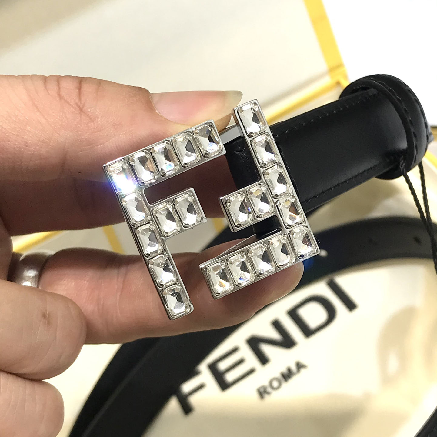 Fendi Women’s FF Buckle With Crystal Belt In Black Calfskin With Silver Hardware 20mm