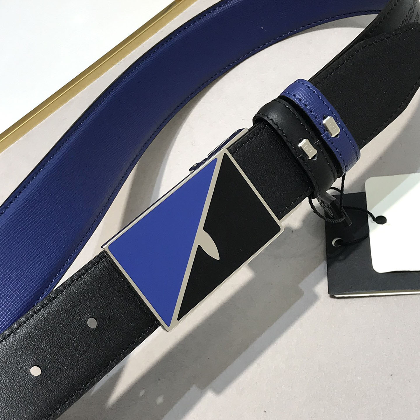 Fendi Men’s FF Monster Eyes Belt In Blue/Black Saffiano Leather With Silver Hardware 35mm