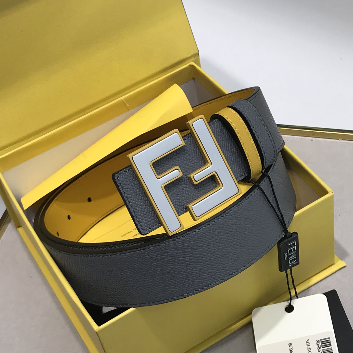 Fendi Men’s Rectangled FF Buckle Reversible Belt In Black/Blue/Red/Yellow Calfskin With Gold/Silver/Gun Black Hardware 35mm