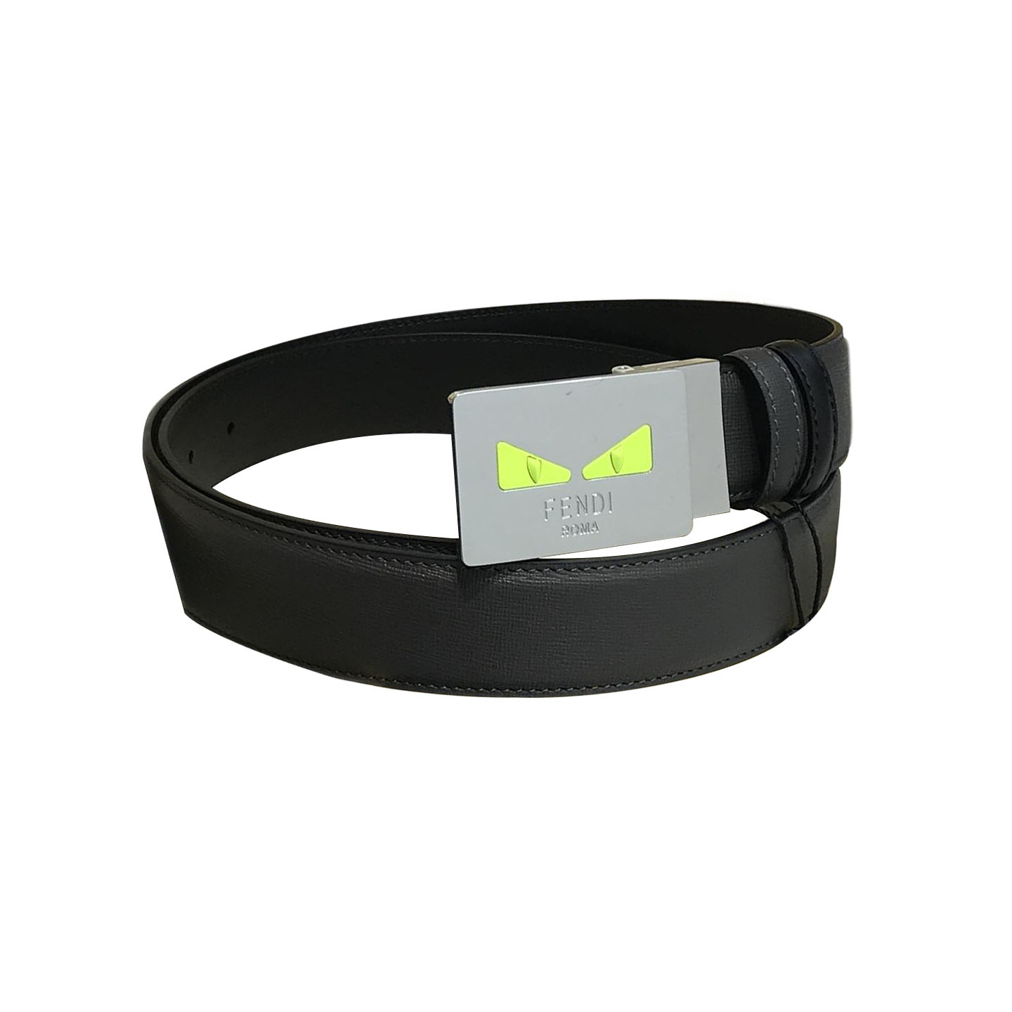 Fendi Men’s FF Monster Eyes Reversible Belt In Blue/Black/Yellow Calfskin With Silver Hardware 35mm