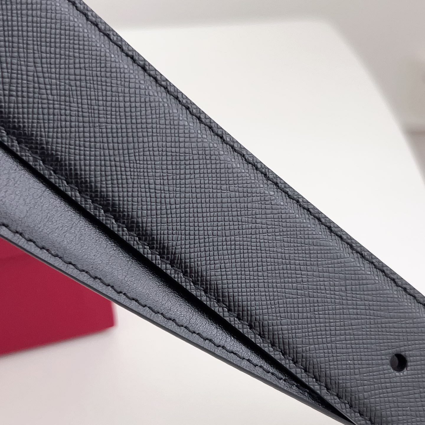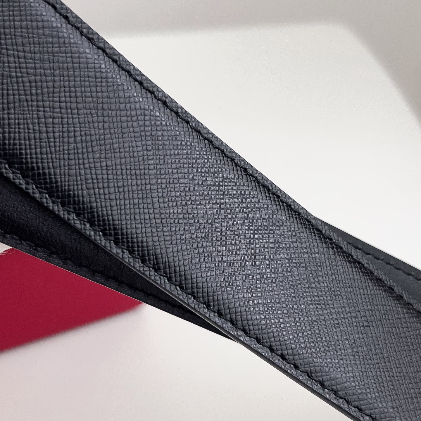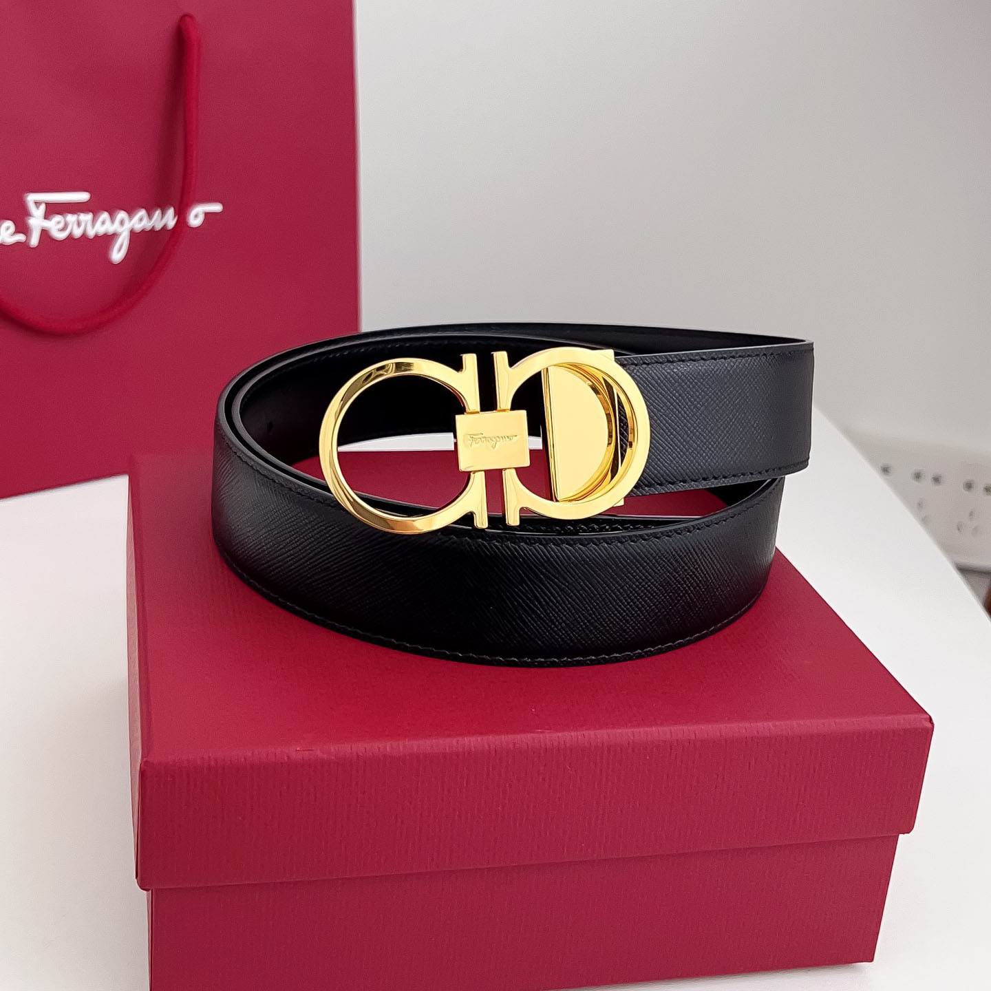 Ferragamo Men’s Thin Double Gancini Buckle Reversible Belt In Black Saffiano Calfskin With Gold/Silver Hardware 35mm