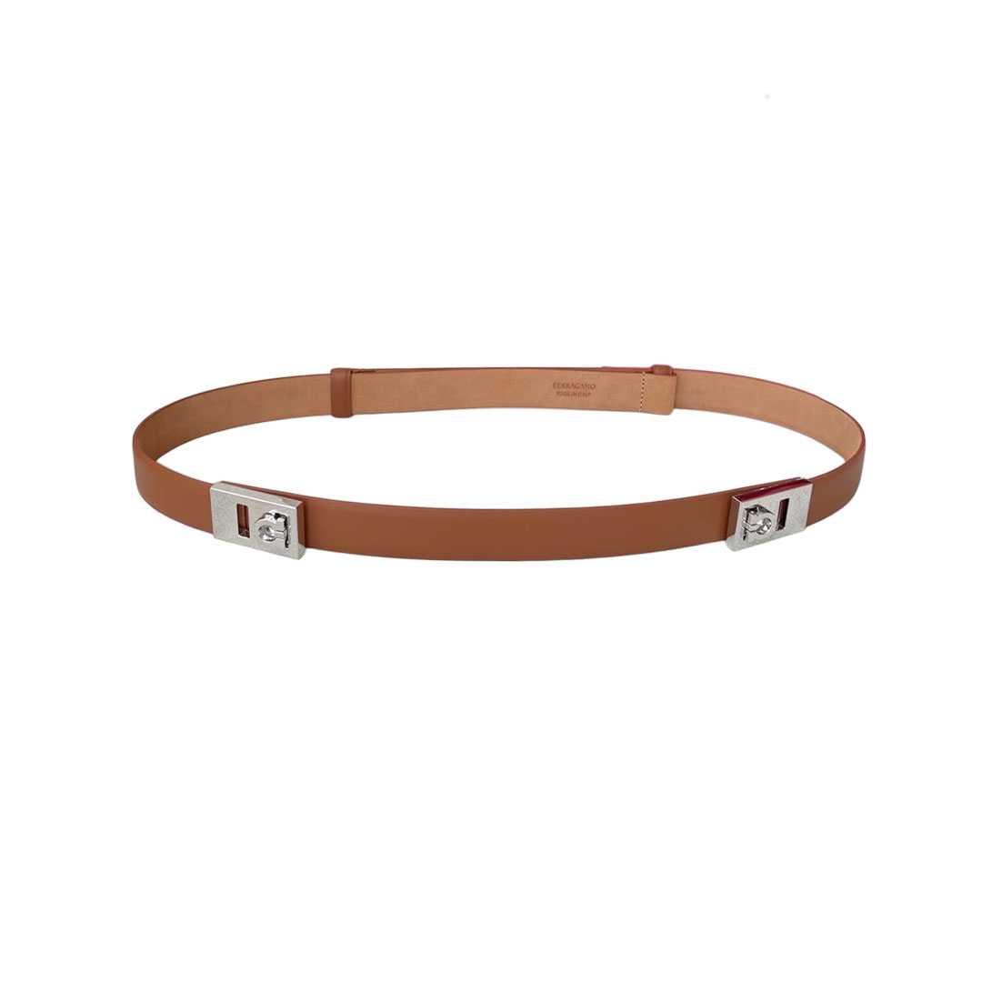 Ferragamo Women’s Extendable Hug Belt In Brown/Black Calfskin With Gold/Silver Hardware 25mm