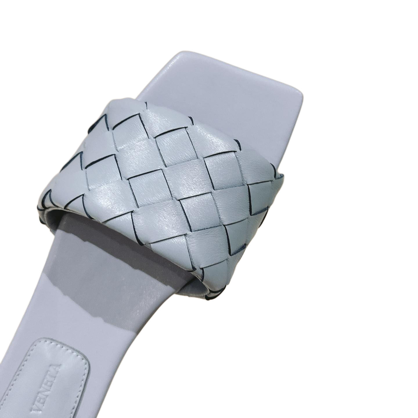 • Bottega Veneta Parco Mule In Blue/Pink Intrecciato Leather Flat Mule Sandal