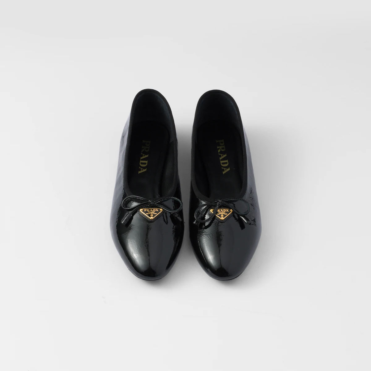 PRADA Patent paint leather Flat Shoes Black Ballet Shoes