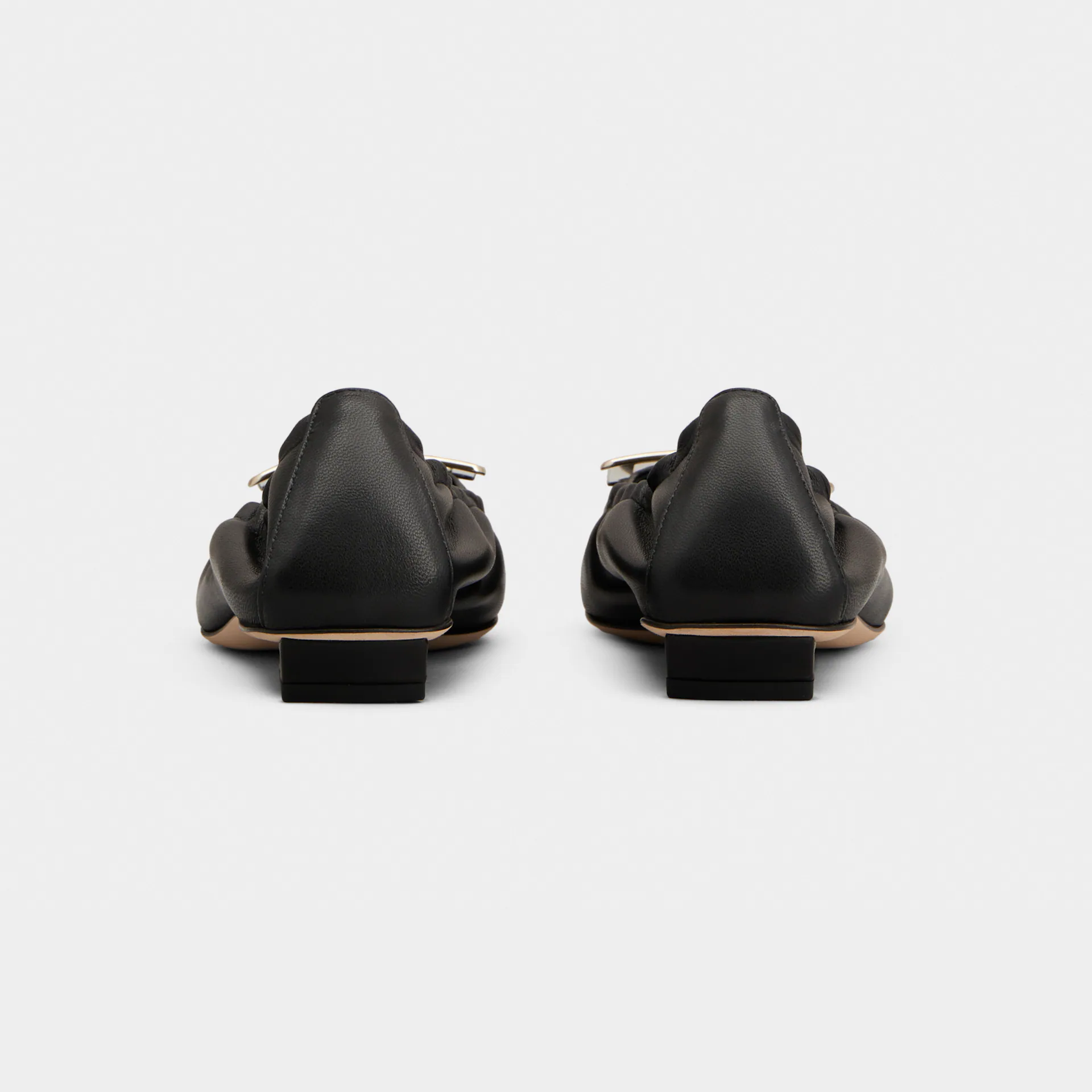 Roger Vivier Belle Vivier Ballerinas In White/Black Leather With Metal Buckle (Heel Height 2.5cm)