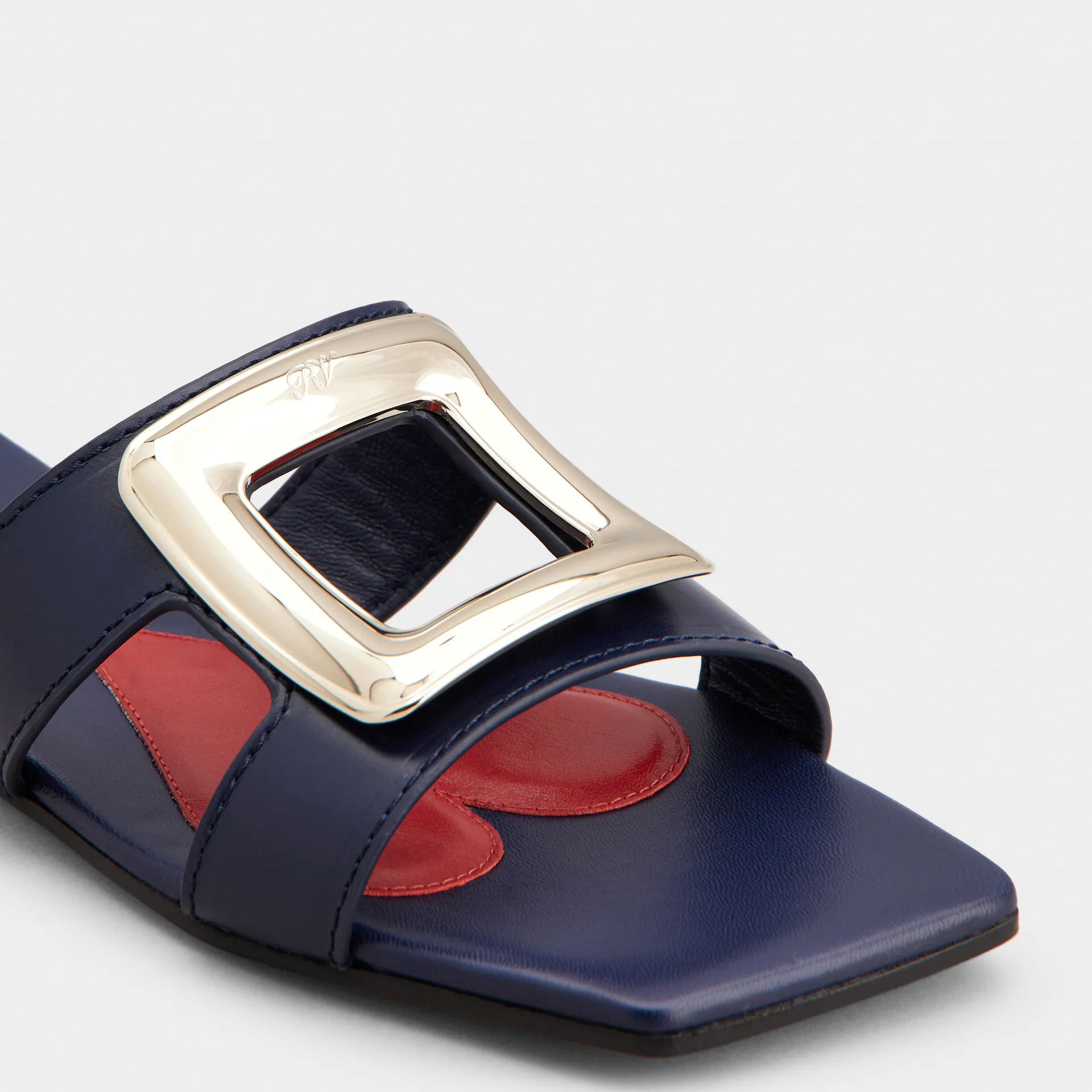 Roger Vivier Viv�� By The Sea Mules Flats In Navy Blue Leather With Metal Buckle