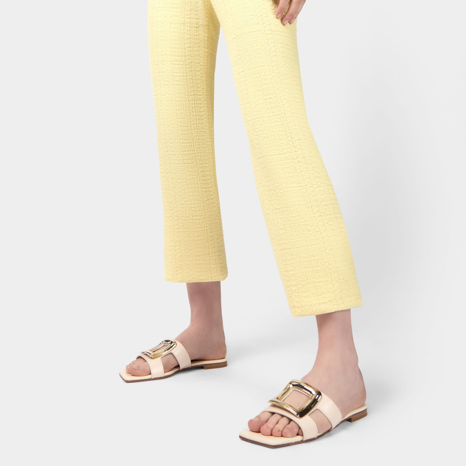 Roger Vivier Viv�� By The Sea Mules Flats In White Leather With Metal Buckle