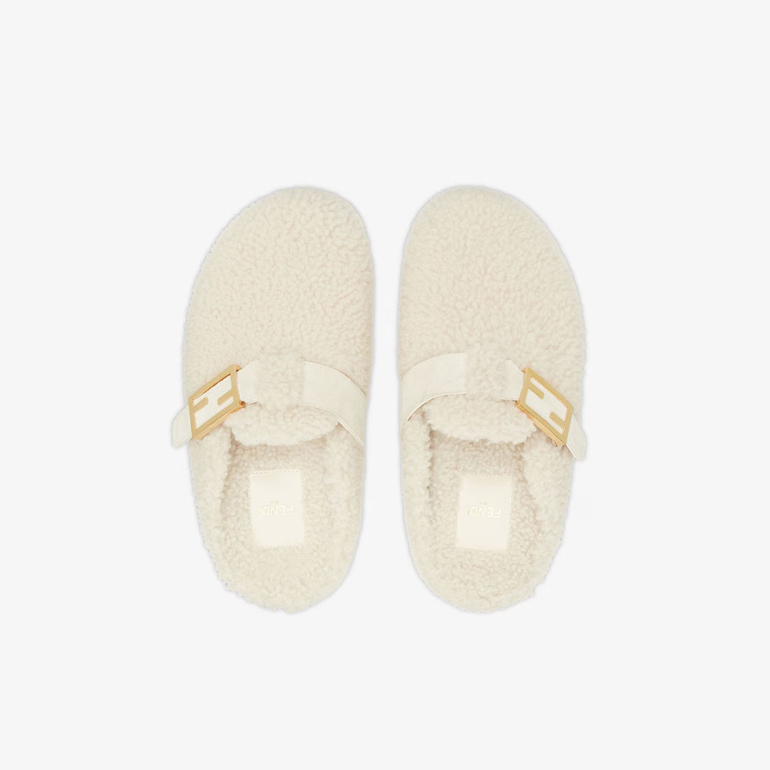 FENDI White sheepskin flats slippers