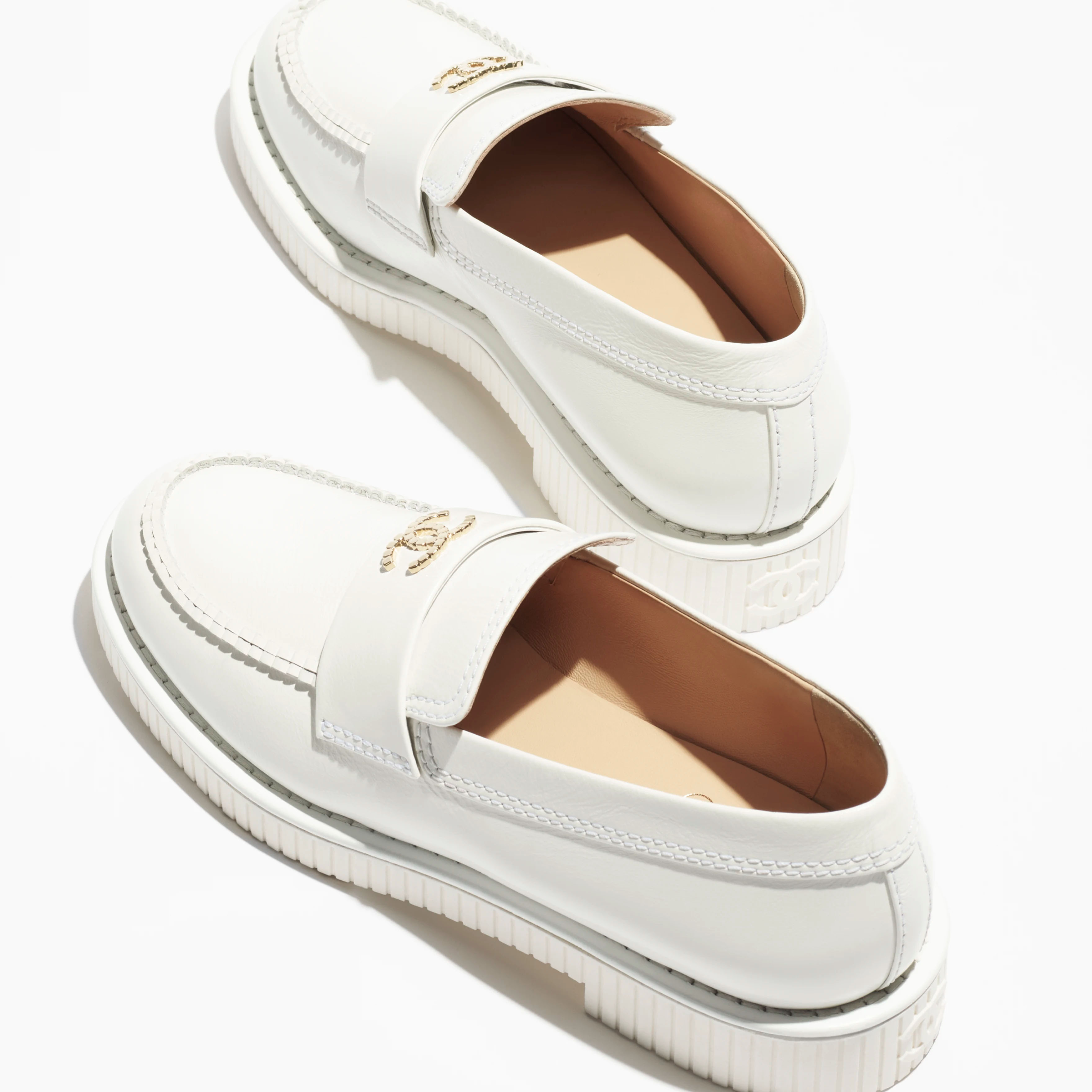 Chanel White wrinkled calf skin Loafers