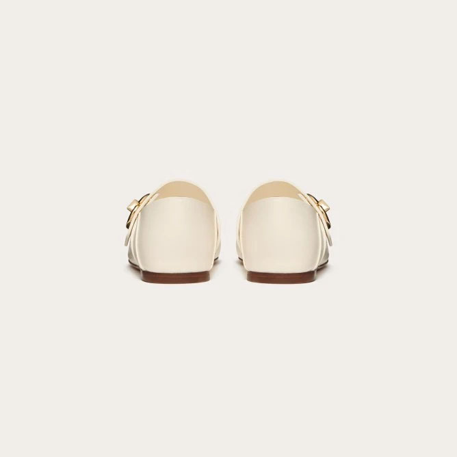 Roger Vivier Broche Vivier Ballerinas Flat Shoes In White/Black/Beige Patent Leather