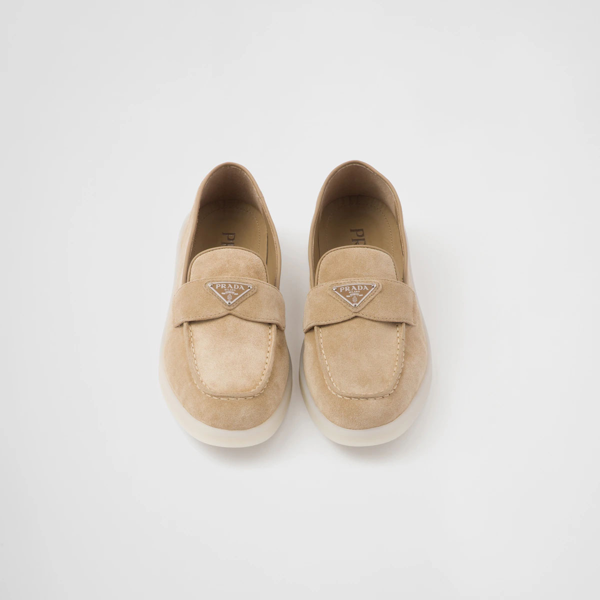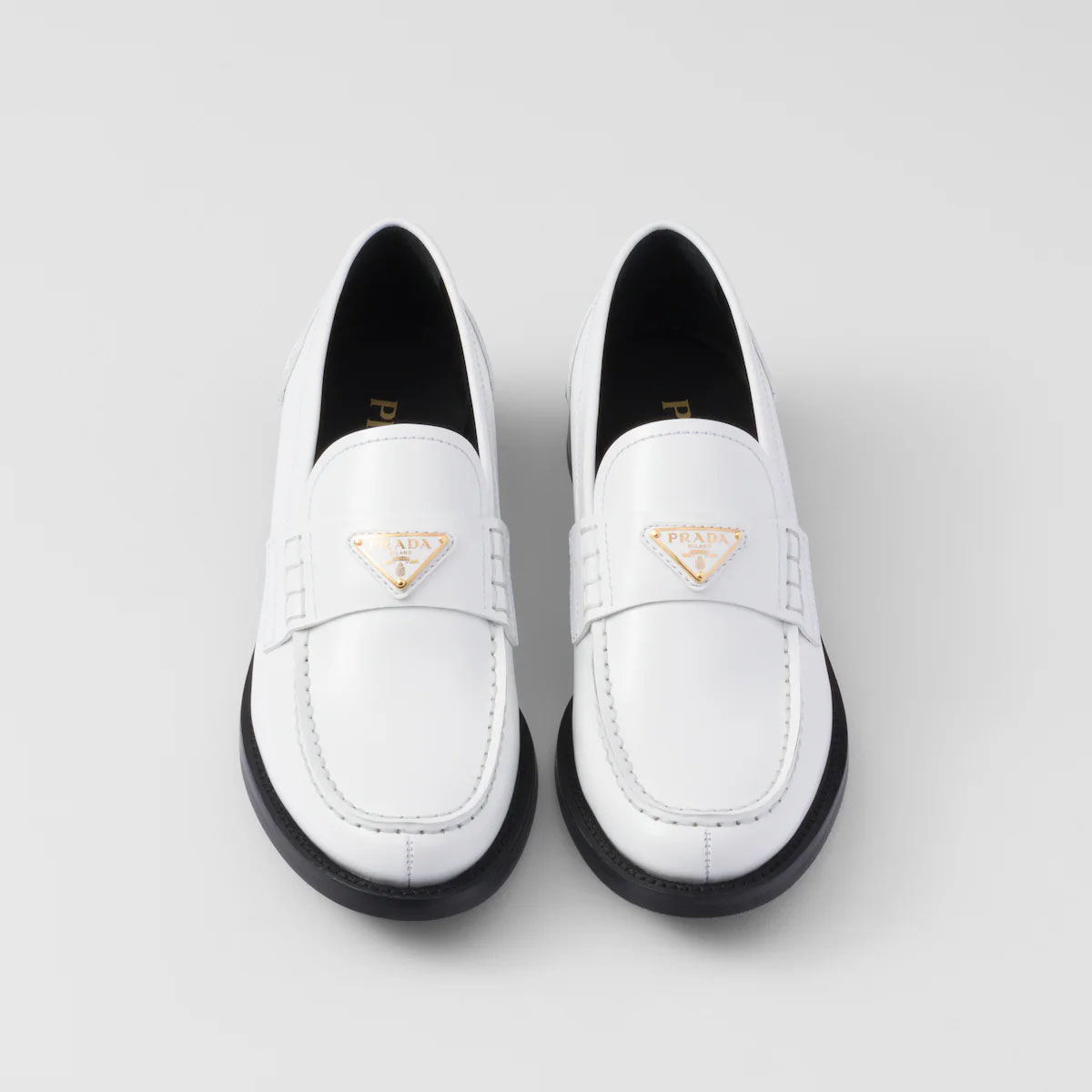 PRADA White shiny leather loafers