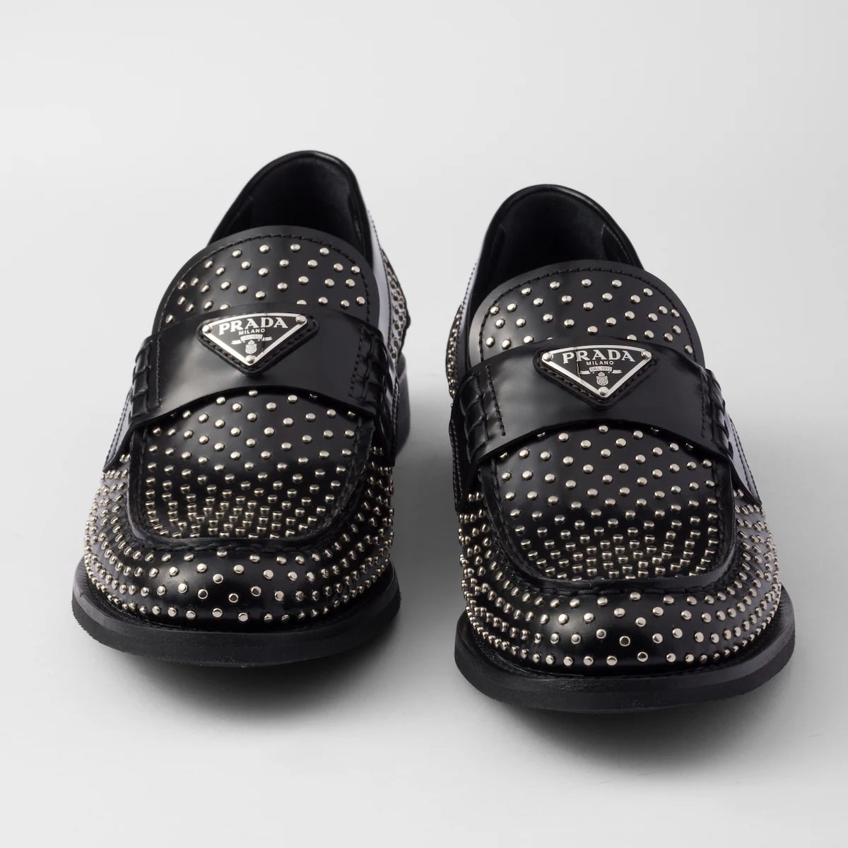 PRADA Studded shiny leather loafers