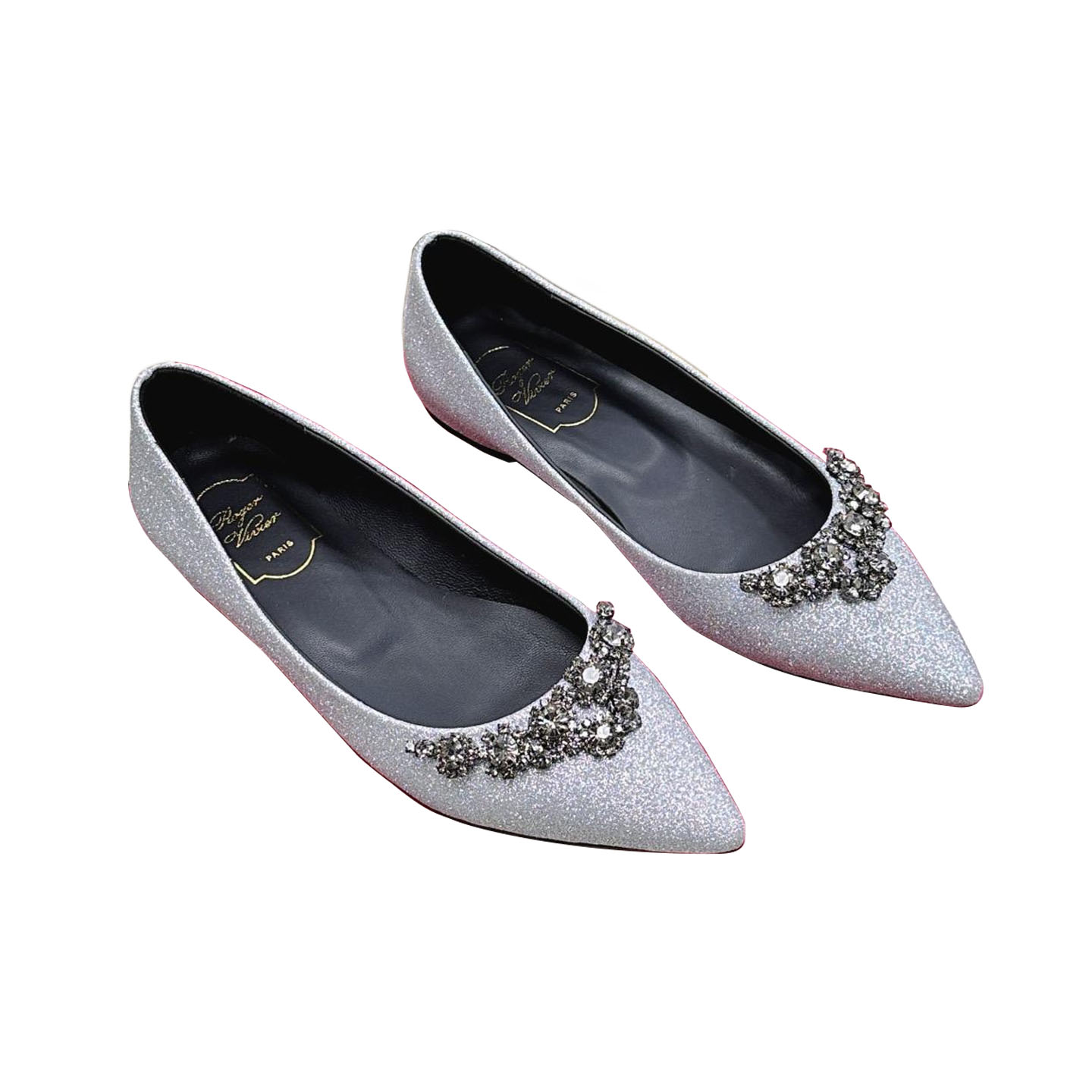 Roger Vivier Tr猫s Vivier Ballerinas Flat Shoes In White/Black/Red/Silver Patent Leather With Crystal Buckle (Heel Height 0.5cm)