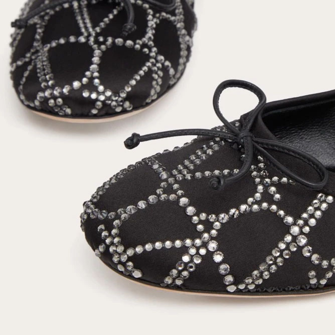 VALENTINO Rivet satin black ballet flats shoes