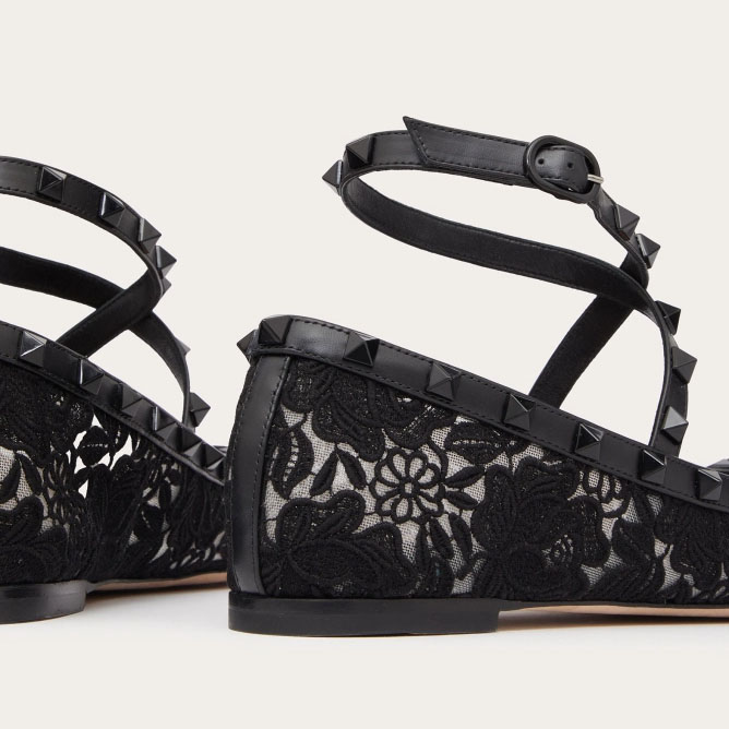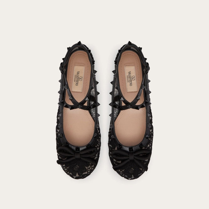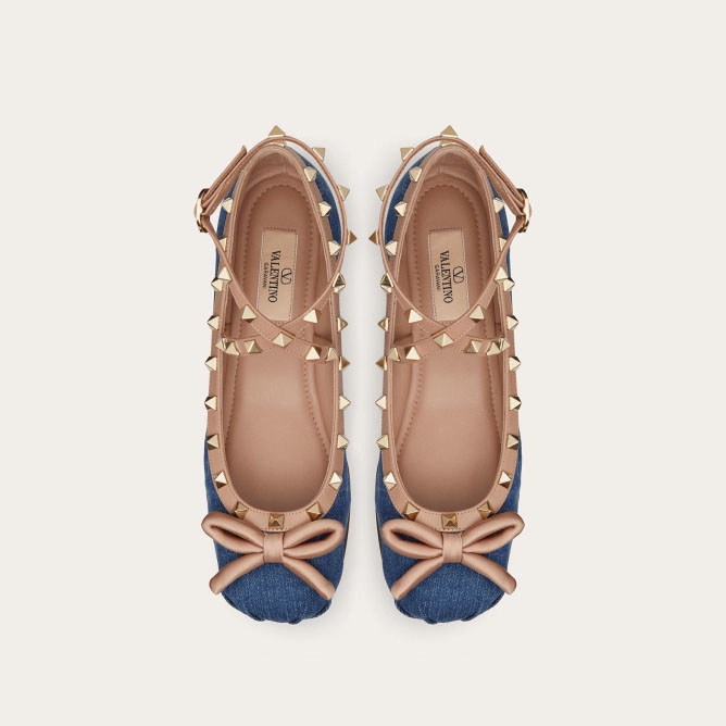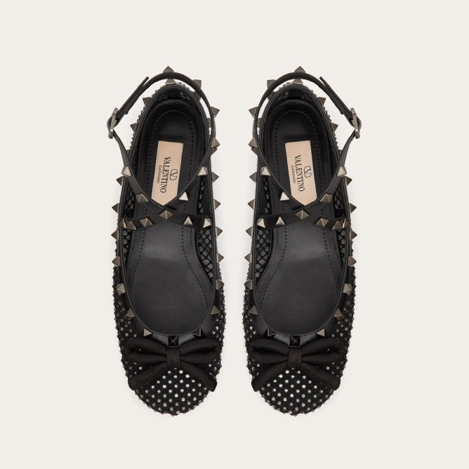 VALENTINO Rivet satin ballet flats shoes