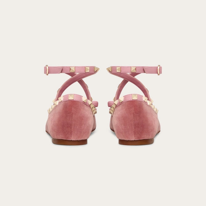VALENTINO Rivet satin pink ballet flats shoes