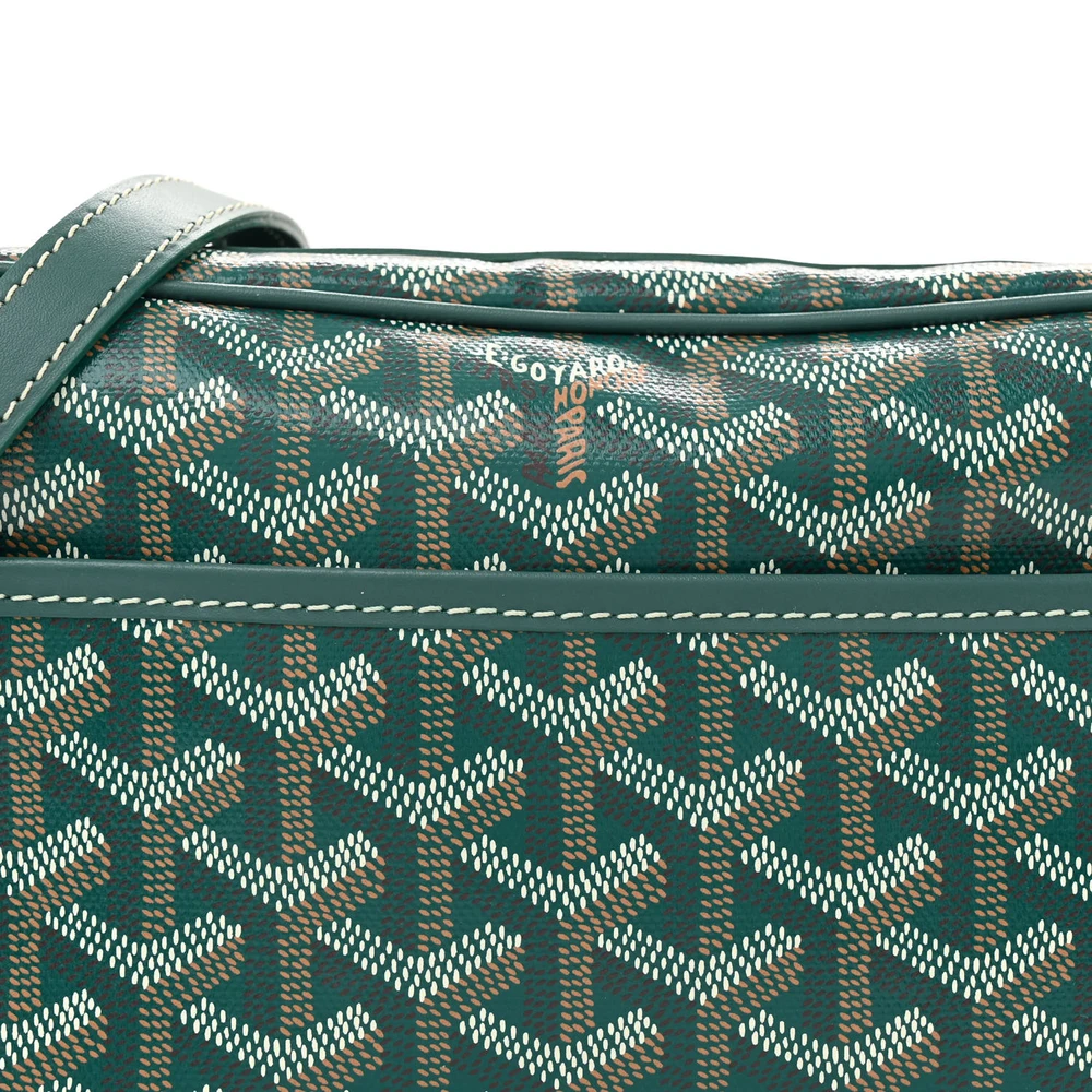 This Goyard Sac Cap Vert Bag PM in Green features iconic Goyardine canvas with leather accents. The compact silhouette offers practicality with a flap closure and adjustable strap. Its green hue brings a lively touch to the timeless design. The structured design makes it perfect for everyday use. Lightweight and elegant, it’s a must-have accessory for any Goyard enthusiast.