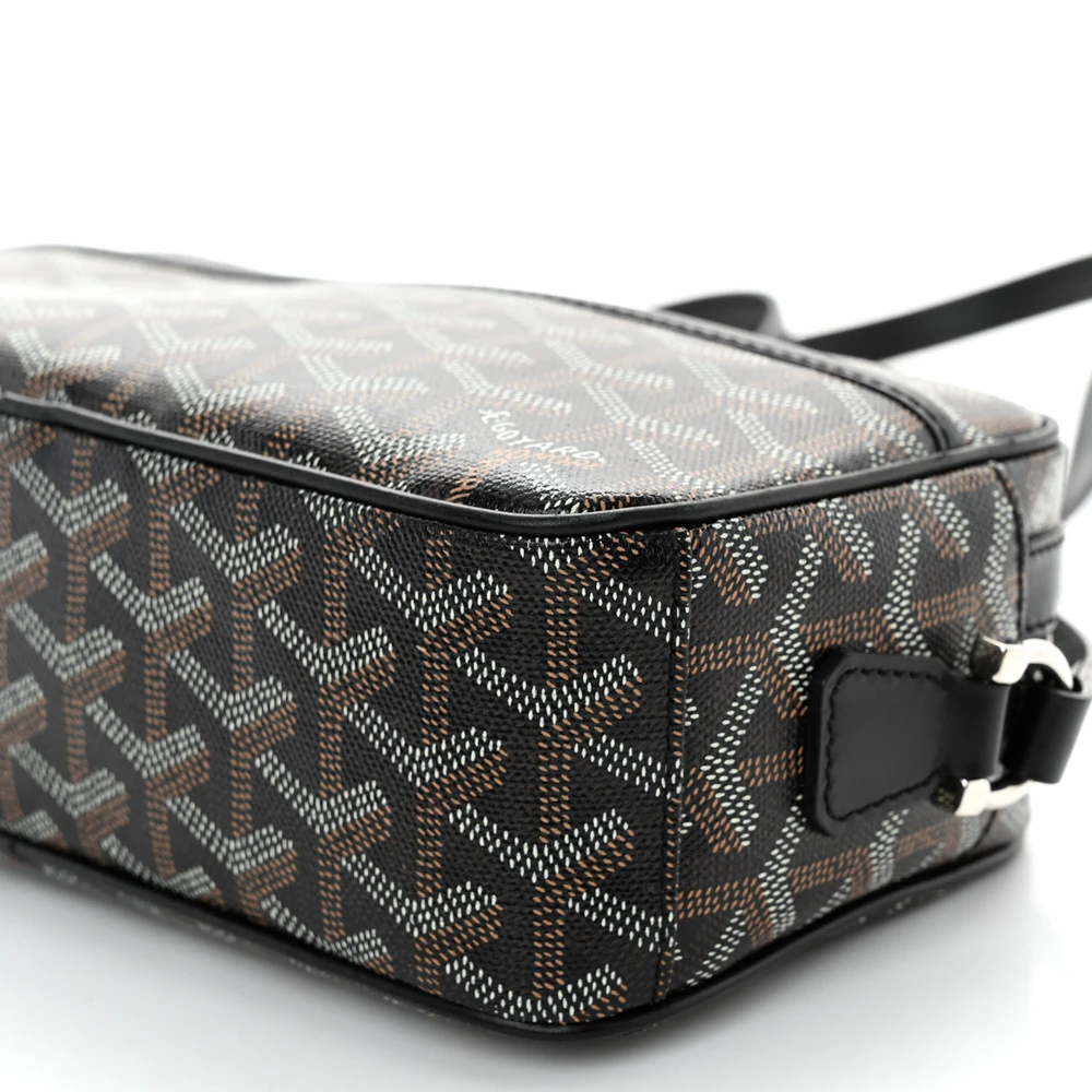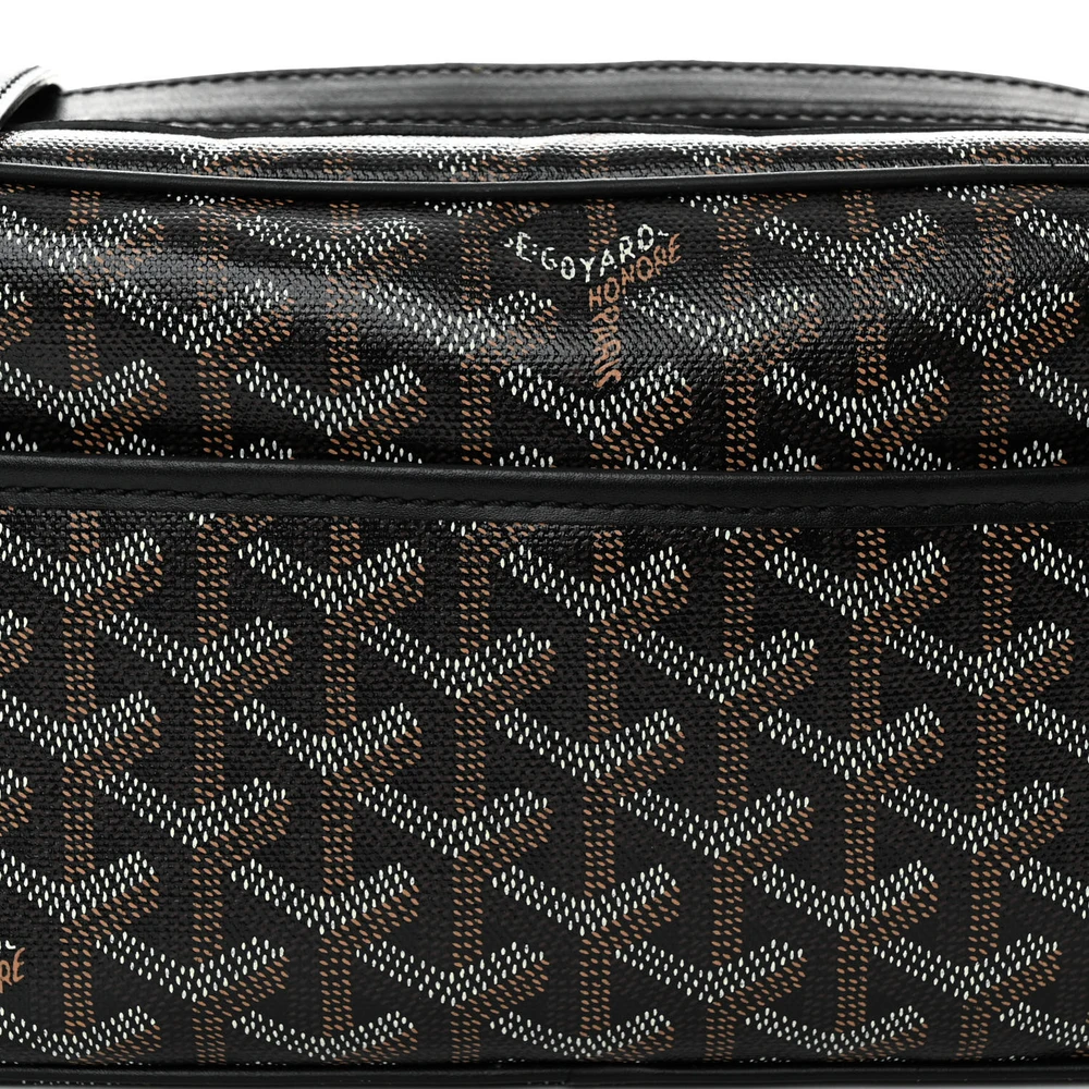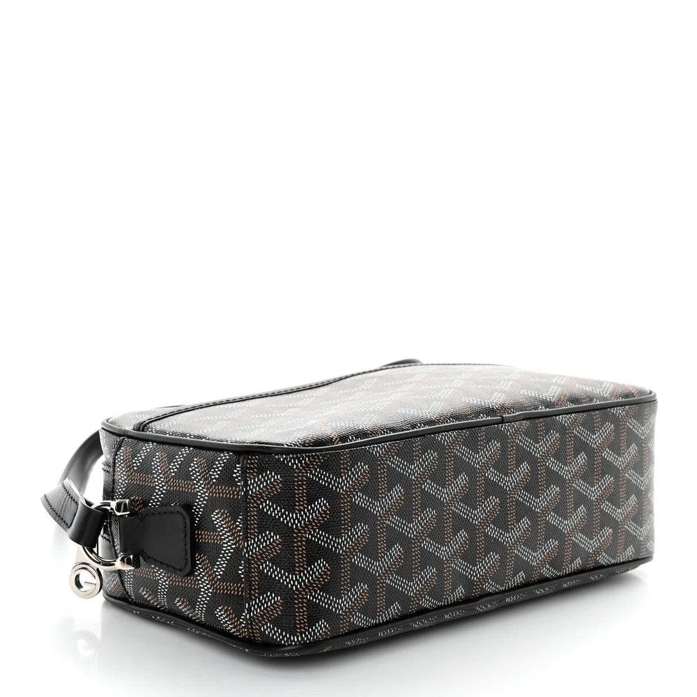 This Goyard Sac Cap Vert PM in Black is crafted in Goyardine canvas with silver hardware. The compact size and adjustable strap make it versatile for crossbody or hand carry. The sleek black finish adds sophistication to this functional design. Perfect for modern style and practicality.