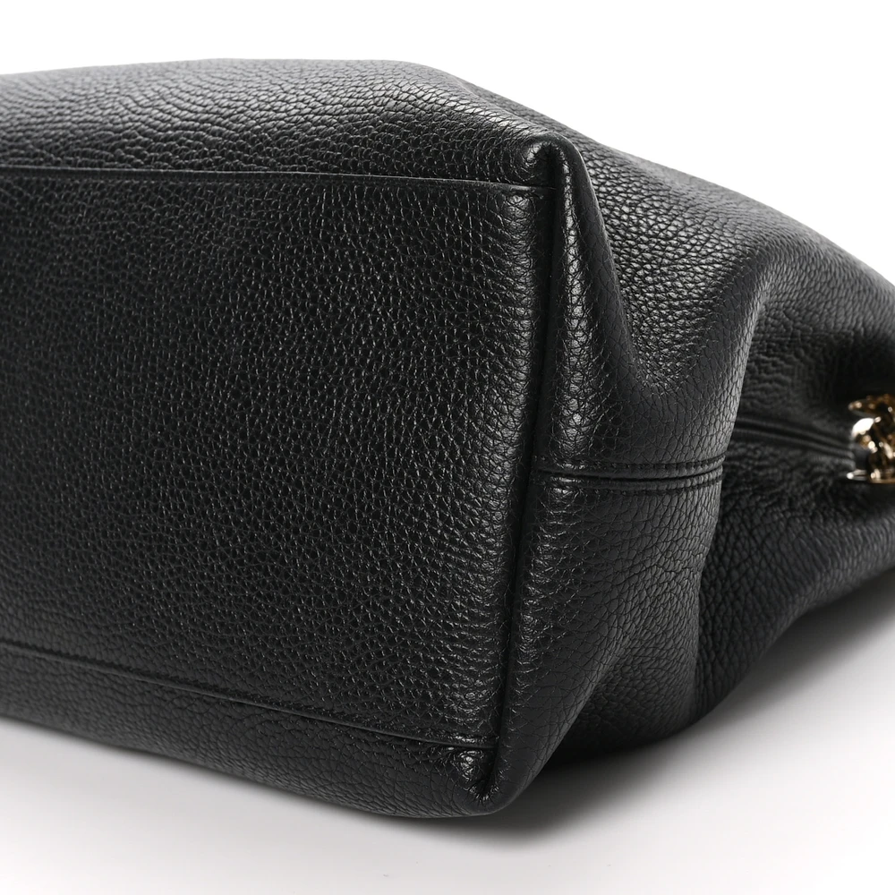 Gucci Medium Soho Chain Shoulder Bag Black Pebbled Calfskin Leather Light Gold Hardware
