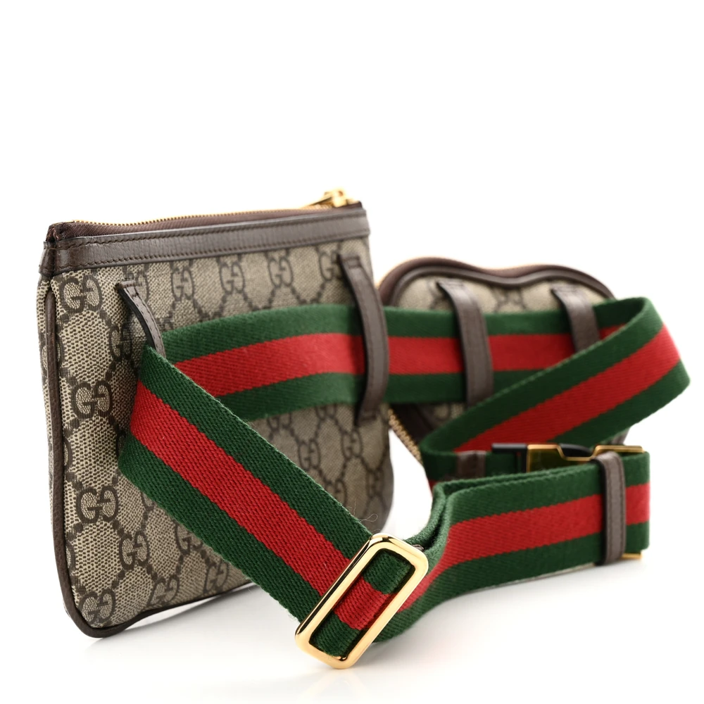 Gucci Medium Web Ophidia Utility Belt Bag Beige / Ebony / New Acero GG Supreme Monogram Canvas & Calfskin Leather Gold Hardware