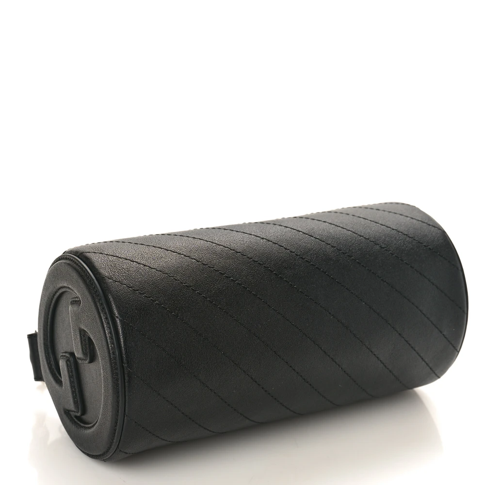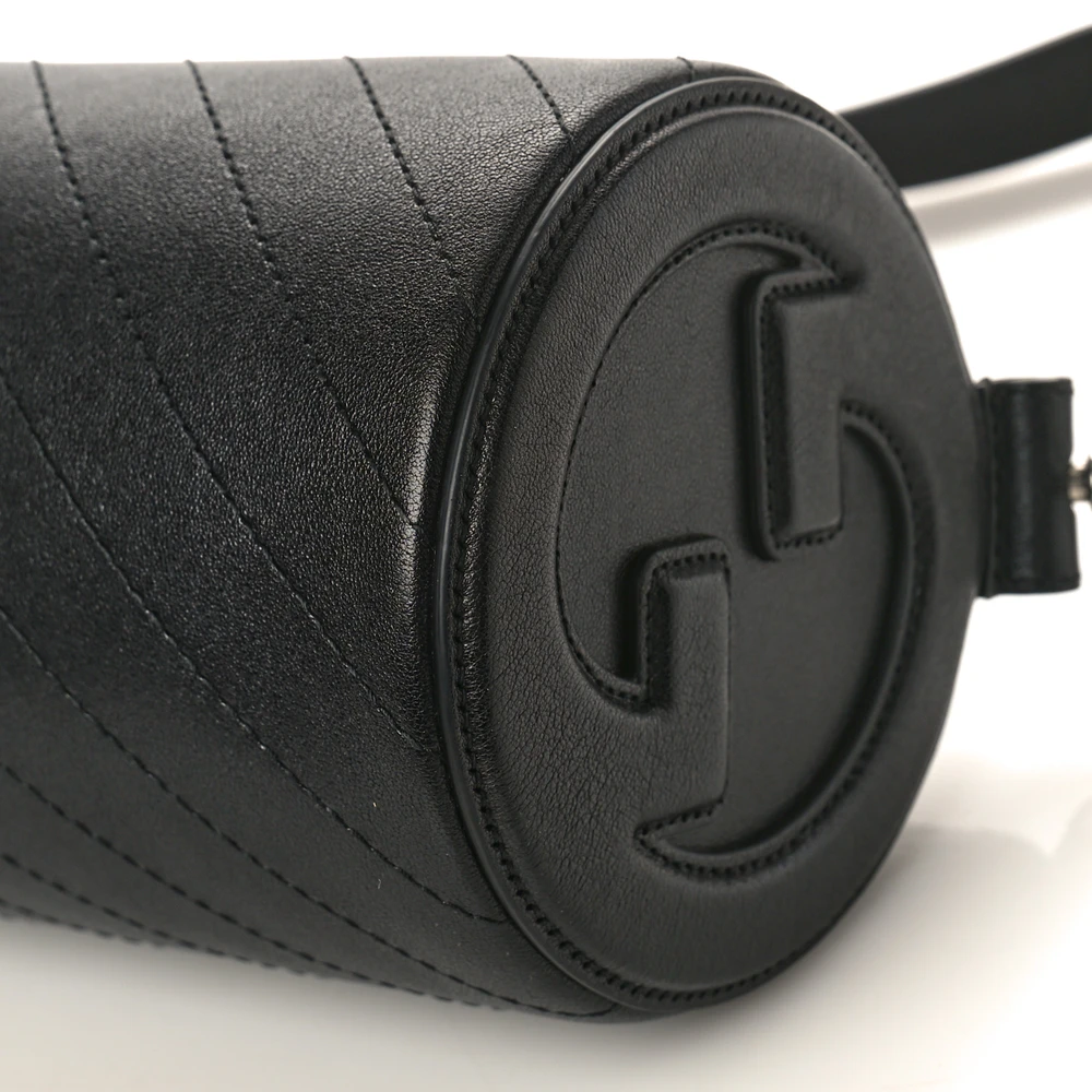 This Gucci Mini Diagonal Stitched Blondie Barrel Shoulder Bag features black Sakai Be Green calfskin leather. Silver hardware adds a contemporary finish. Compact size ideal for essentials. A bold and unique addition to any collection.
