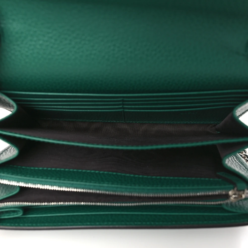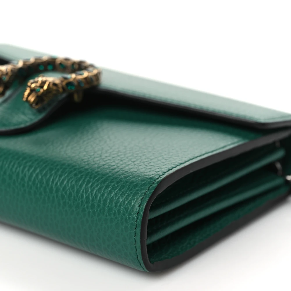 Gucci Mini Dionysus Chain Wallet Emerald Calfskin Leather Aged Silver Hardware