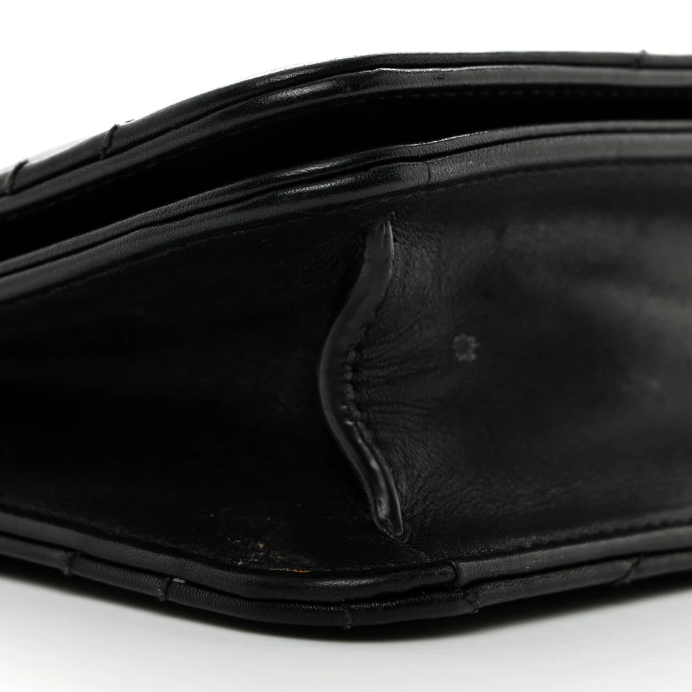 This Gucci Mini GG Marmont Bag is crafted in black calfskin matelassé leather. The aged gold hardware adds a vintage charm. Its compact size is perfect for carrying essentials. Designed with timeless elegance for any occasion. A must-have addition to any fashion-forward wardrobe.