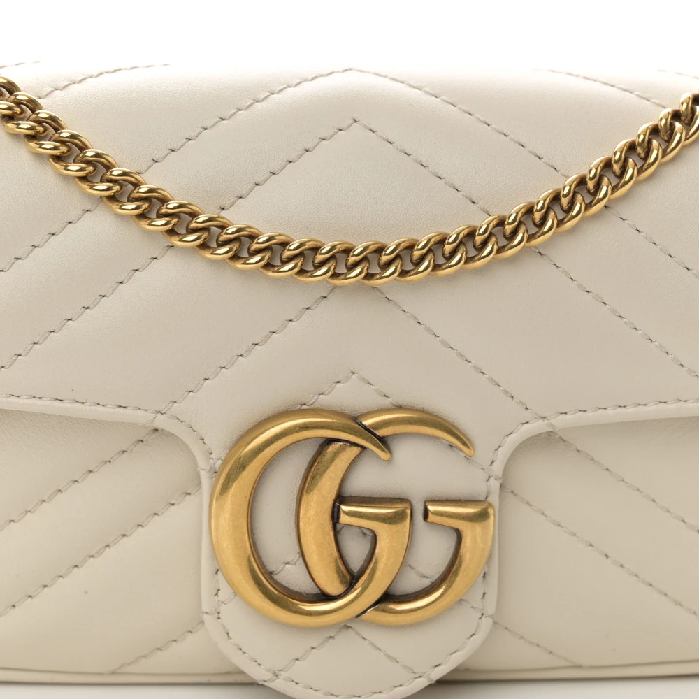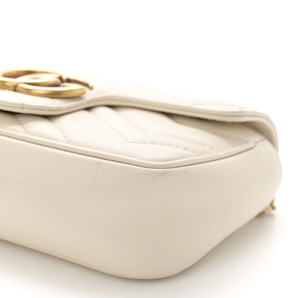 Gucci Mini GG Marmont Shoulder Bag White Calfskin Matelassé Super Leather Aged Gold Hardware