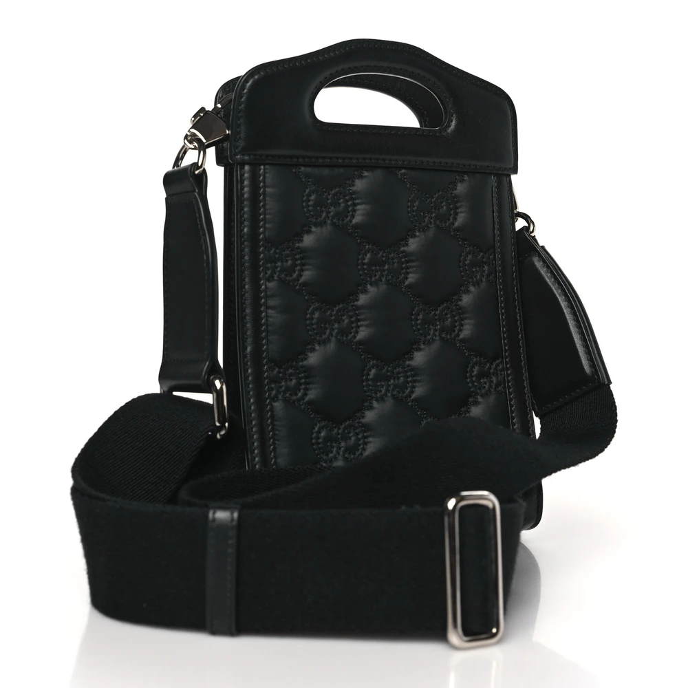 Gucci Mini Top Slip Handle Crossbody Bag Black Nylon & GG Enamel Calfskin Matelassé Leather Black Hardware