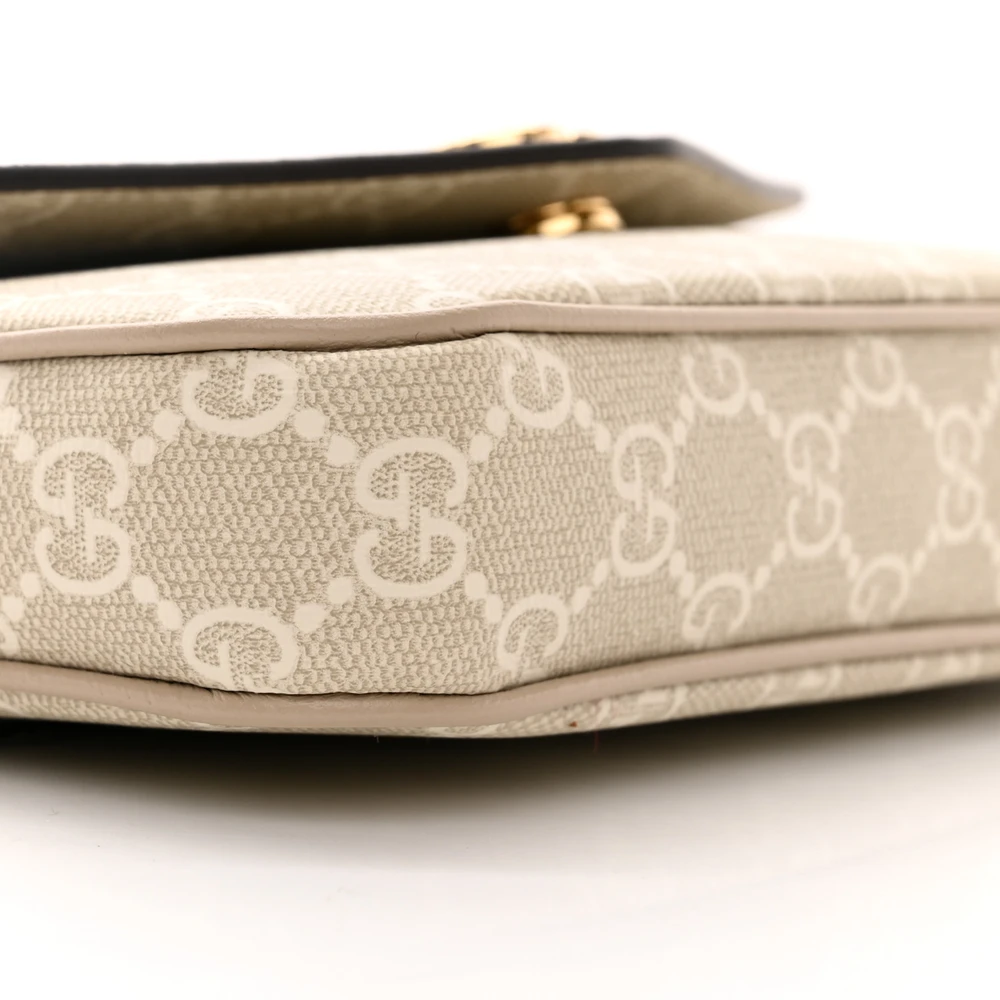 Gucci Mini Web Ophidia Envelope Shoulder Bag Beige / Mystic White / Oatmeal GG Supreme Monogram Canvas & Textured Dollar Calfskin Leather Gold Hardware