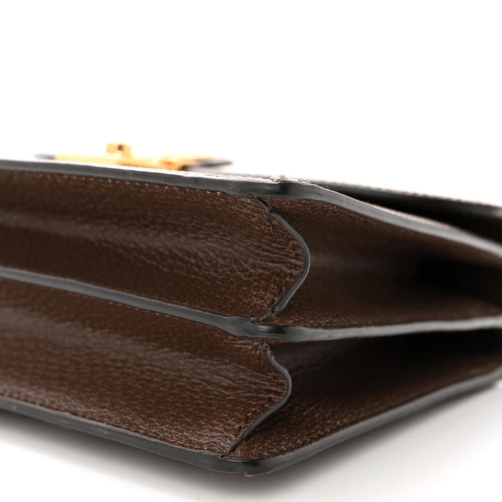 Gucci Small Web Ophidia Padlock Top Handle Bag Beige / Ebony / New Acero GG Supreme Monogram Canvas & Textured Dollar Calfskin Leather Aged Gold Hardware