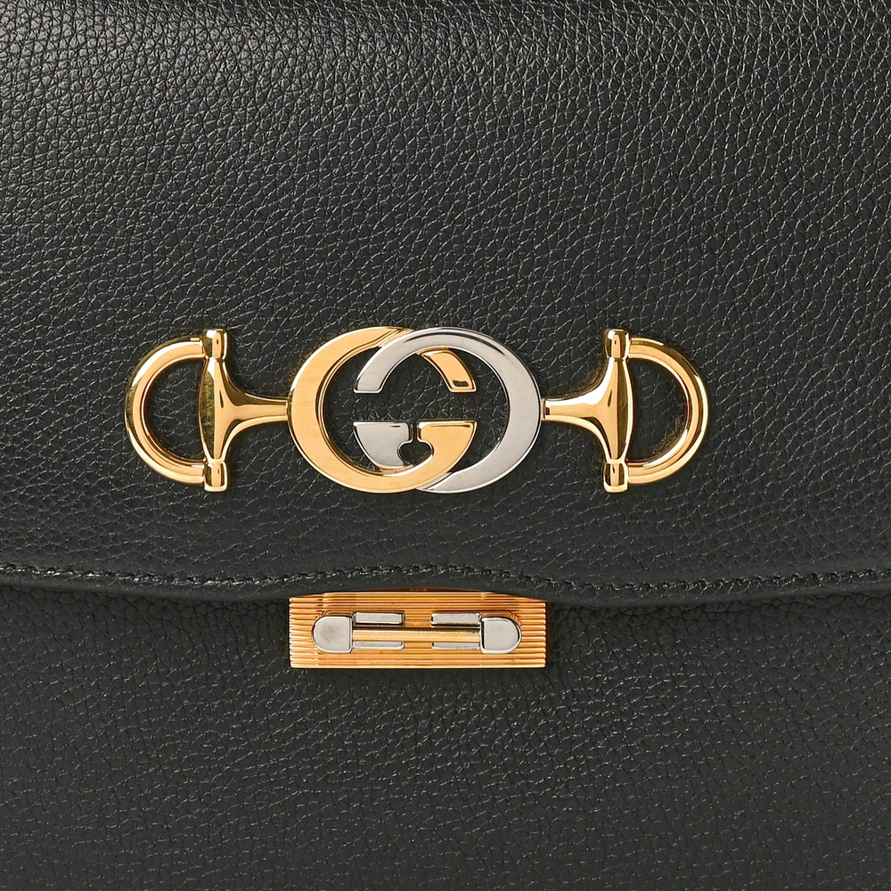 Gucci Small Zumi Shoulder Bag Black Grainy Calfskin Leather Mixed Metal Hardware