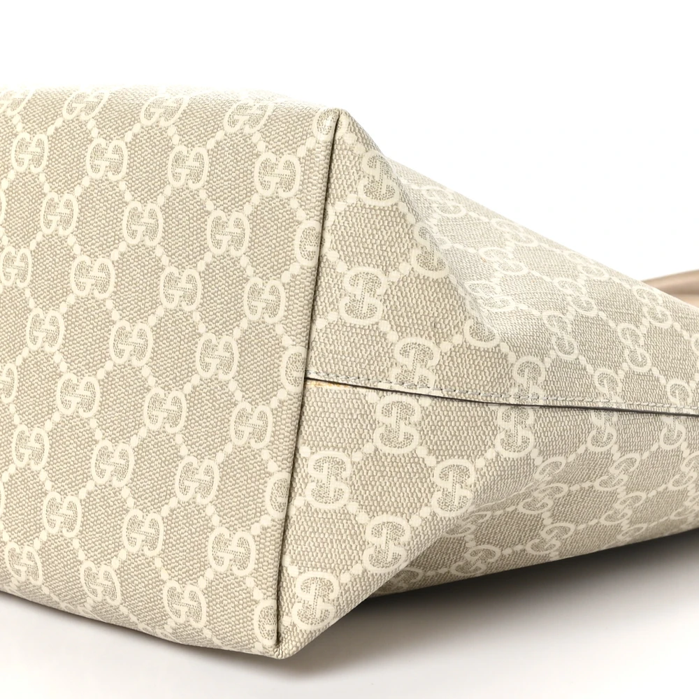 Gucci Medium Ophidia Shopping Tote Beige / Mystic White / Oatmeal GG Supreme Monogram Coated Canvas & Textured Dollar Calfskin Leather Gold Hardware