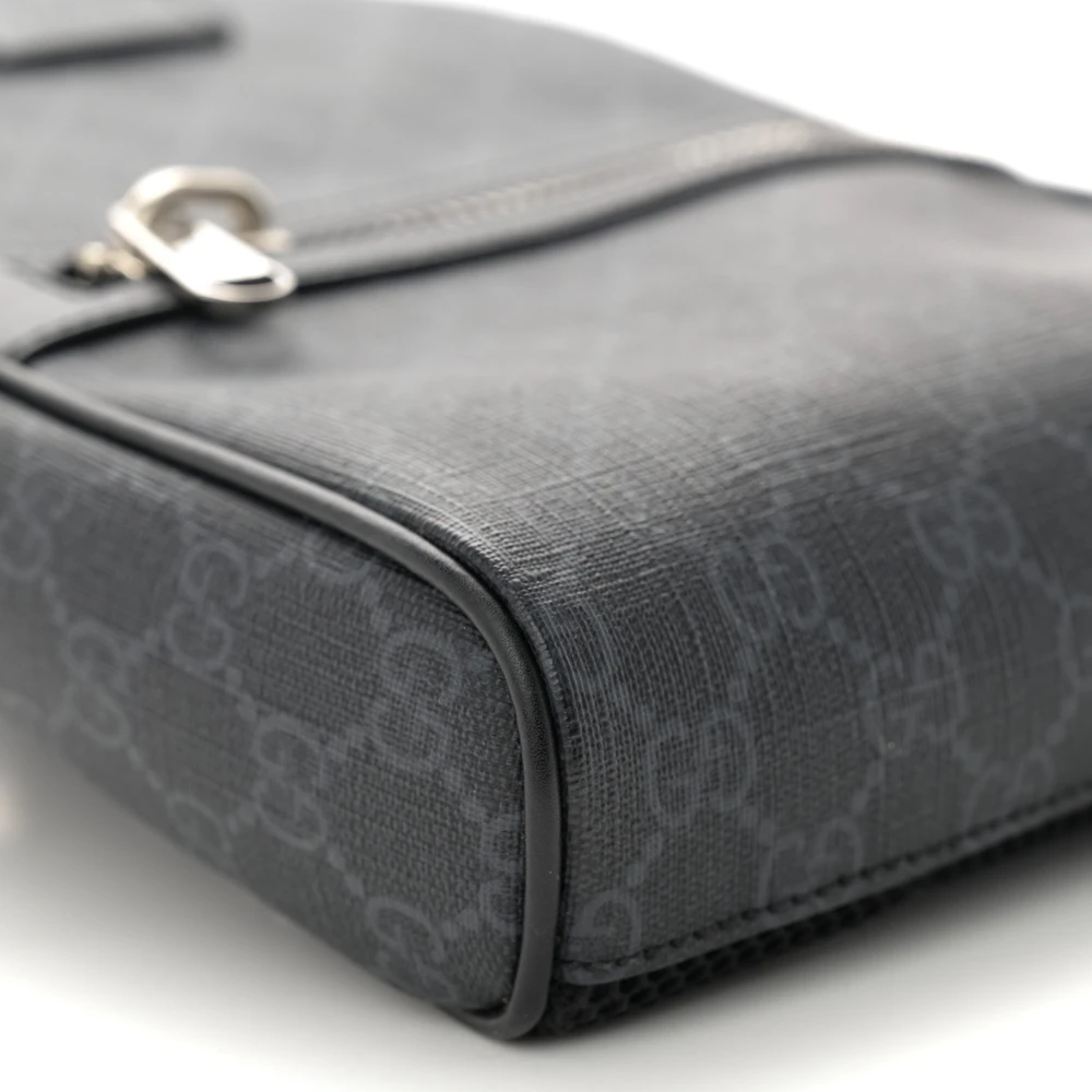 Gucci Medium Sling Backpack Black/Grey GG Supreme Monogram Canvas & Calfskin Leather Silver Hardware