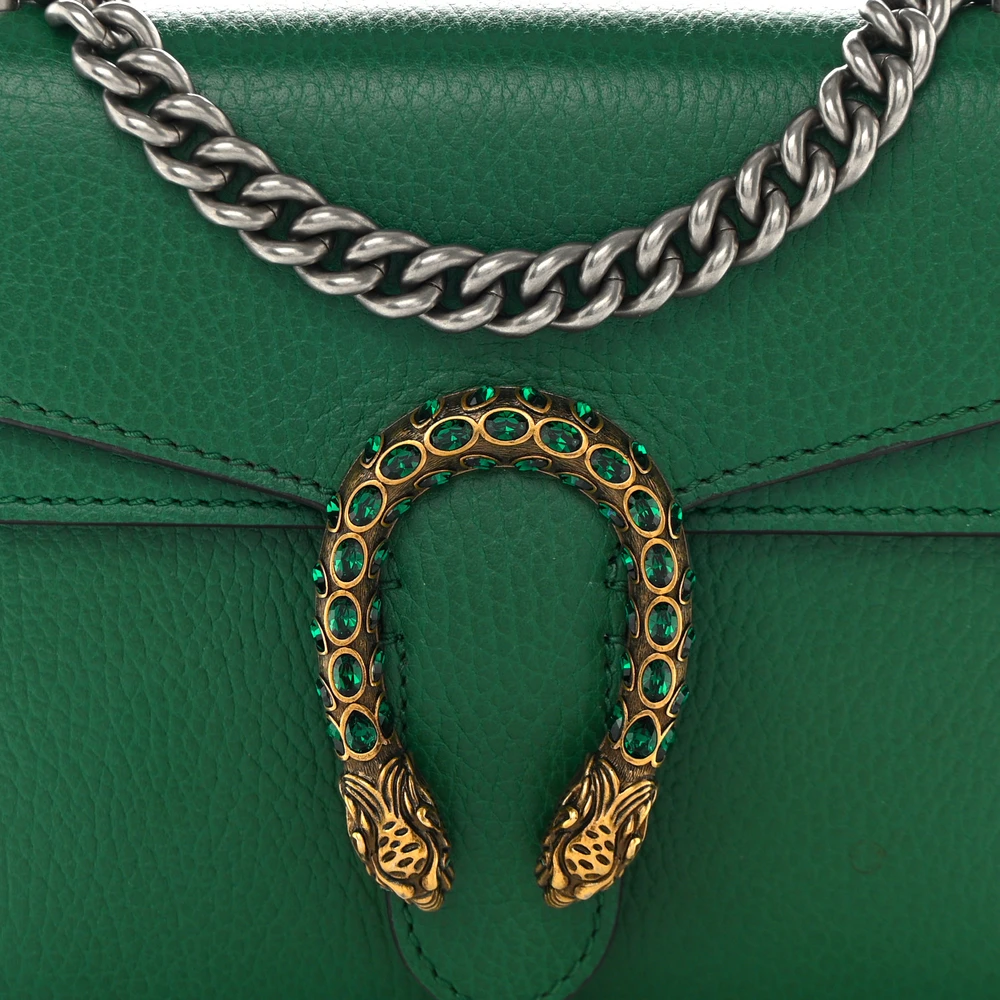 Gucci Mini Dionysus Chain Wallet Emerald Calfskin Leather Aged Silver Hardware