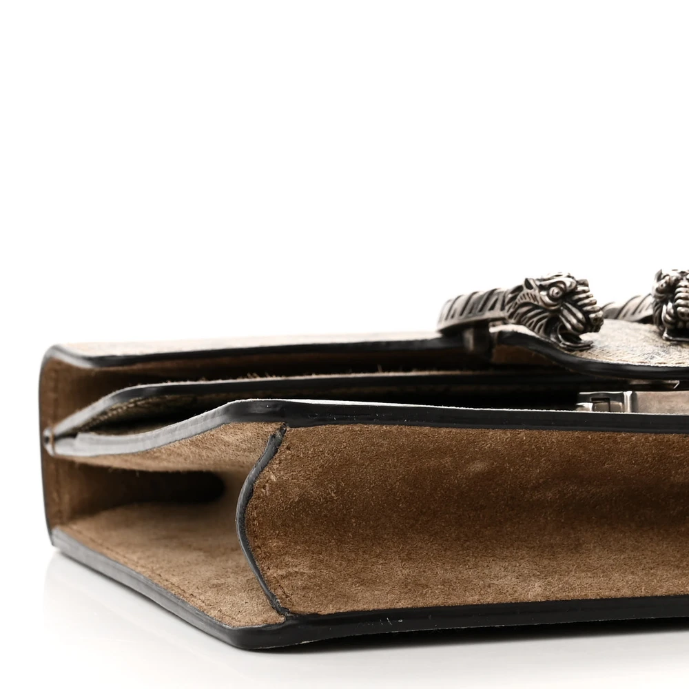 Gucci Mini Dionysus Shoulder Bag Taupe GG Supreme Monogram Canvas Aged Silver Hardware