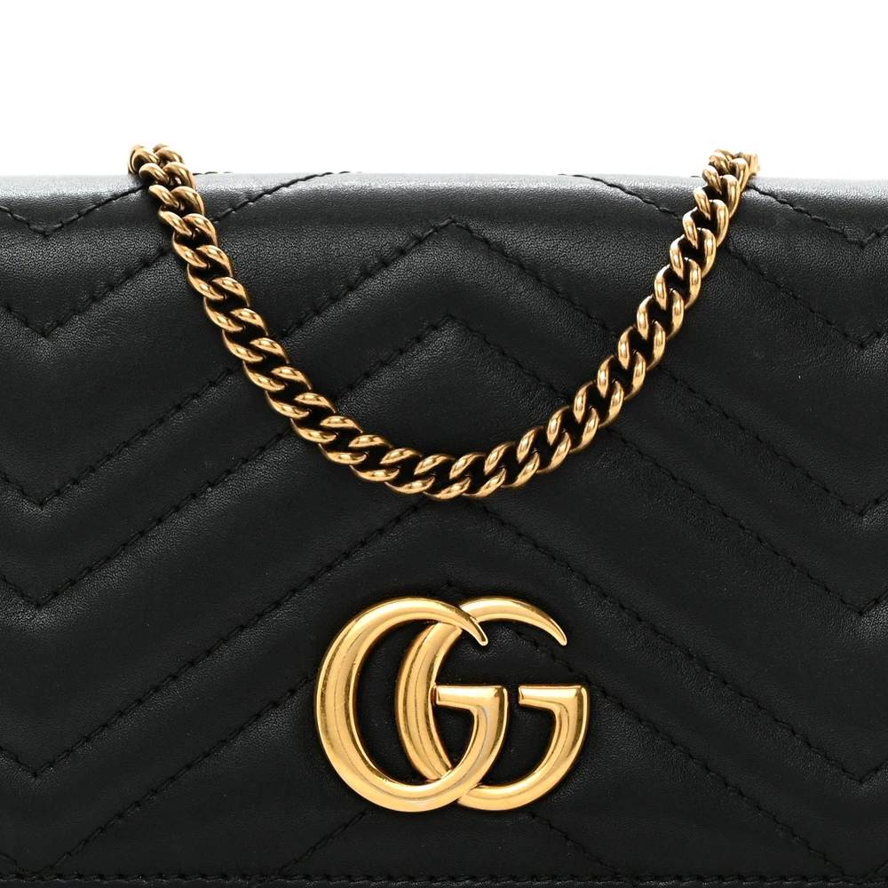 Gucci Mini GG Marmont Bag Black Calfskin Matelassé Leather Aged Gold Hardware