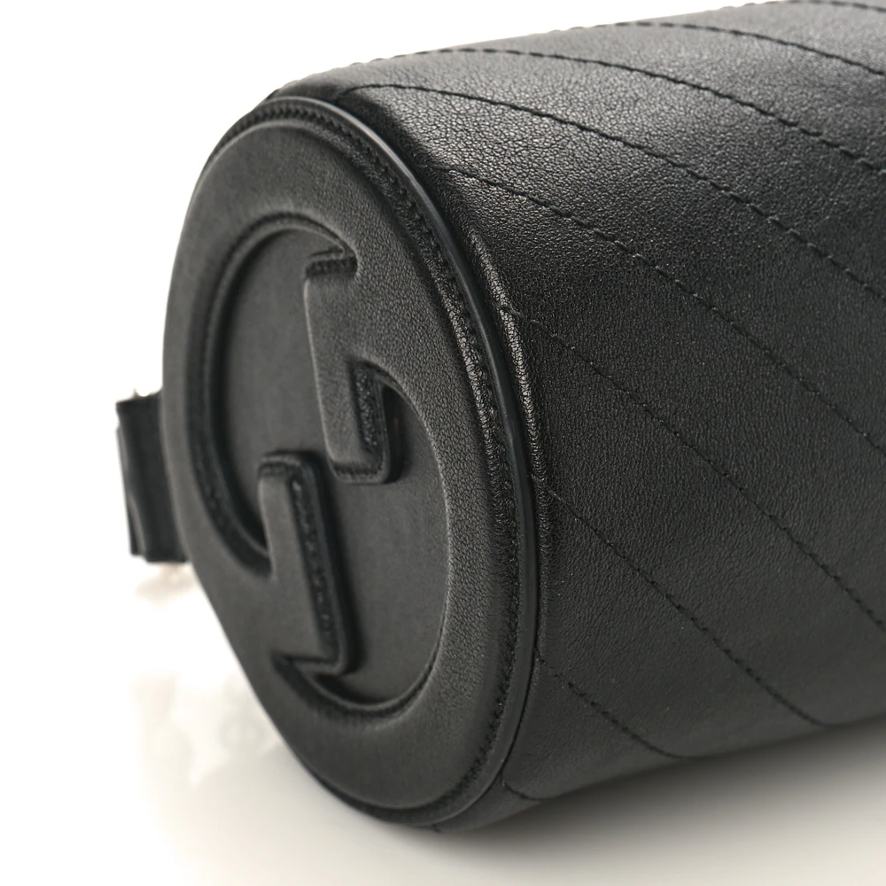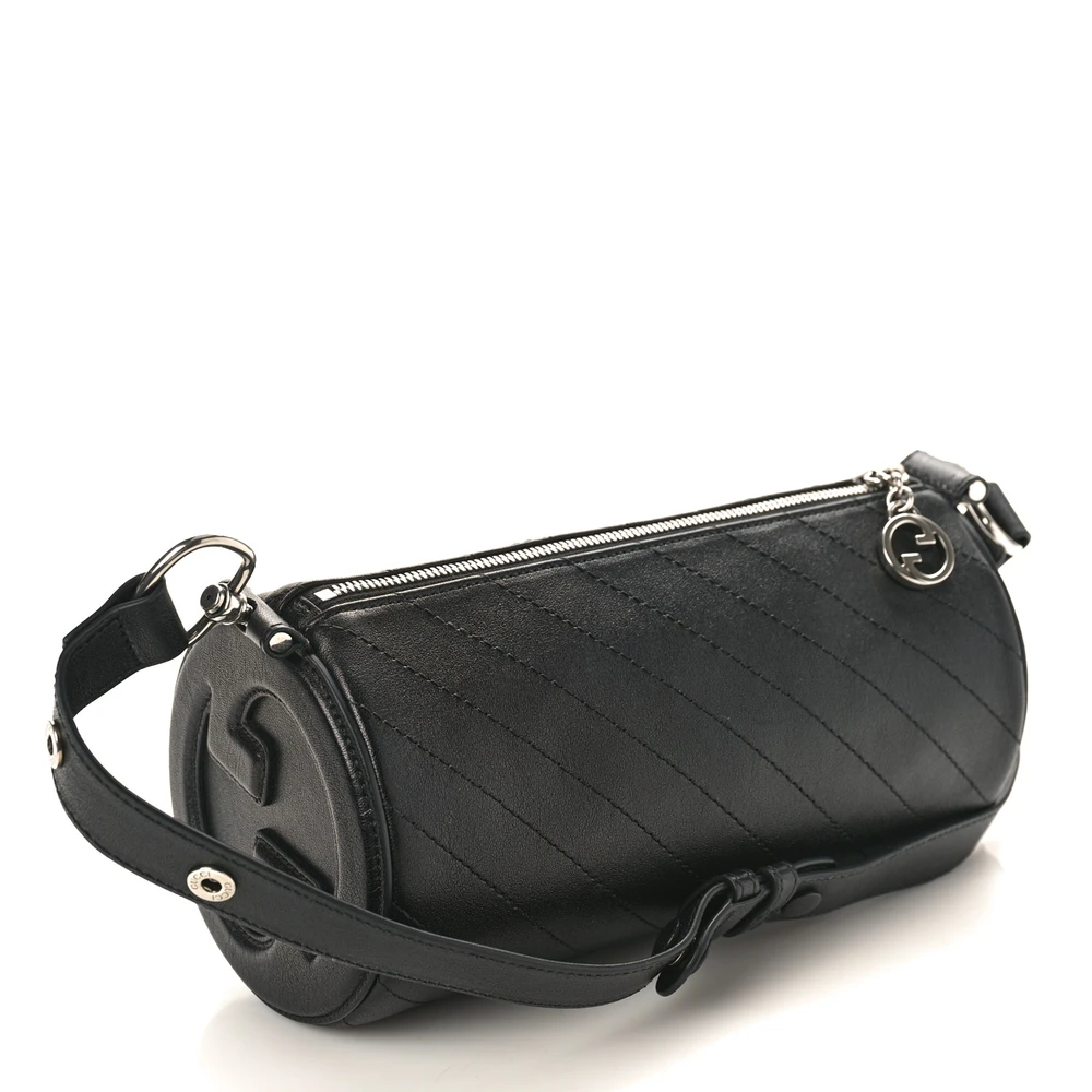 Gucci Mini Diagonal Stitched Blondie Barrel Shoulder Bag Black Sakai Be Green Calfskin Leather Silver Hardware