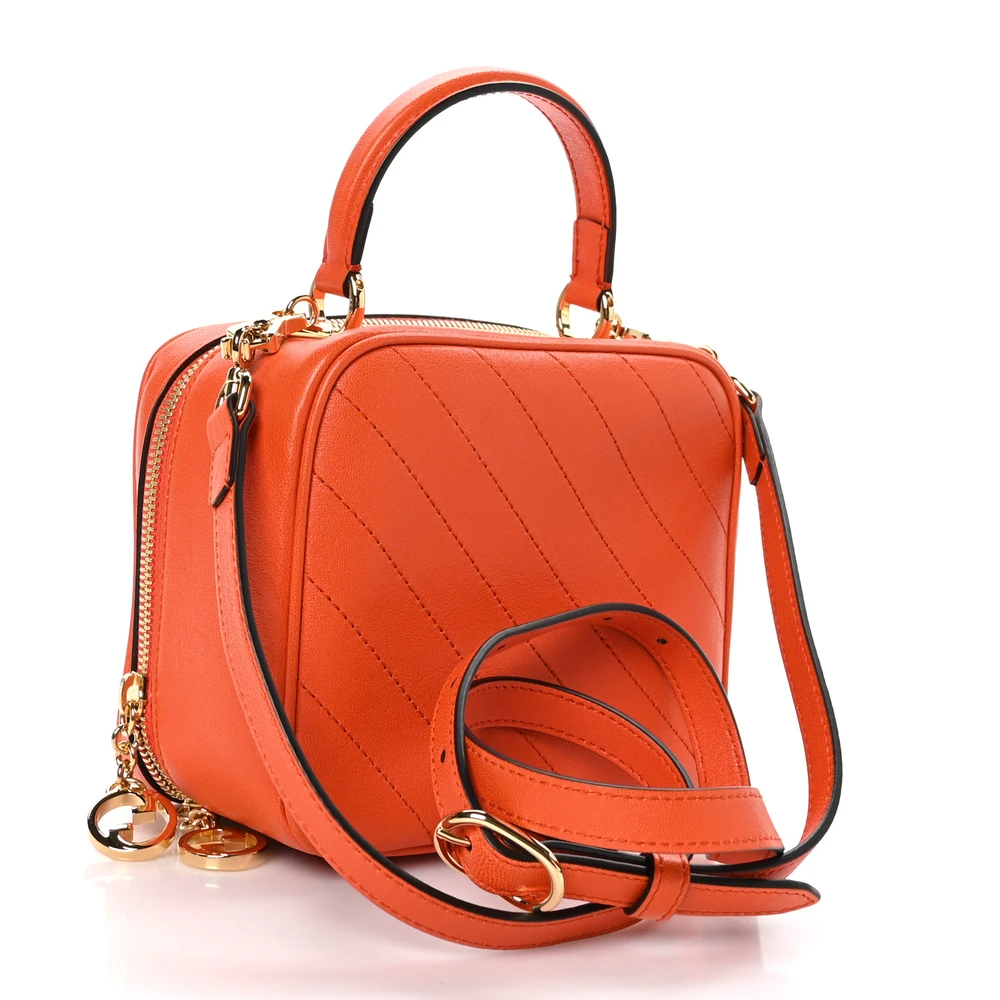 Gucci Small Diagonal Stitched Blondie Shoulder Bag Orange Calfskin Leather Gold Hardware