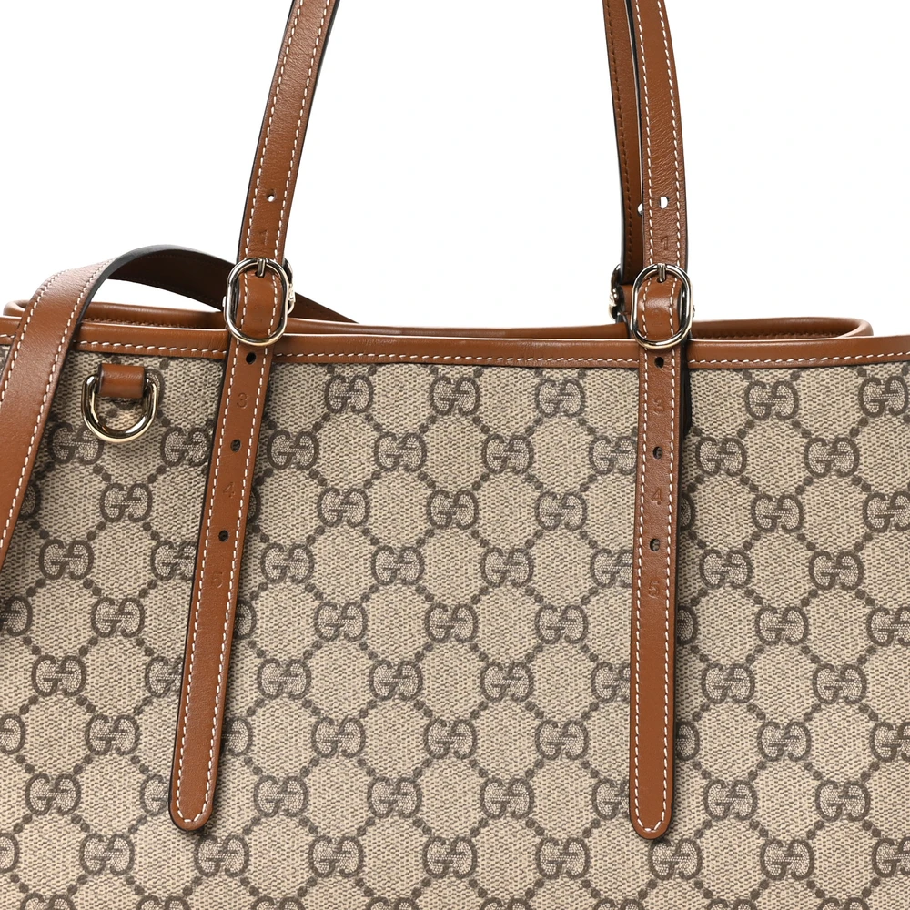 Gucci Small Emblem Tote Beige / Dark Brown GG Supreme Monogram Coated Canvas & Leather Silver Hardware