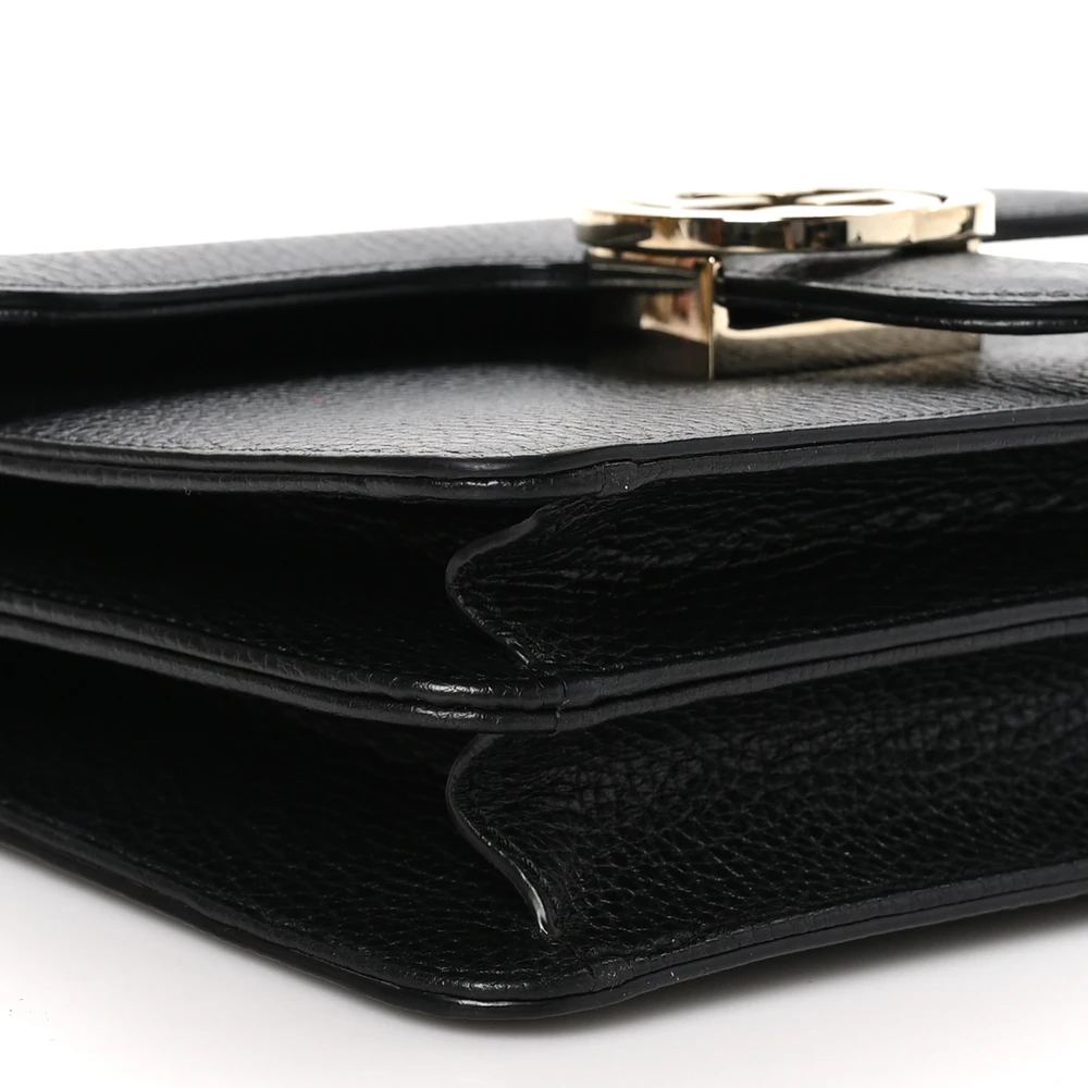 Gucci Small Interlocking G Shoulder Bag Black Dollar Calfskin Leather Gold Hardware