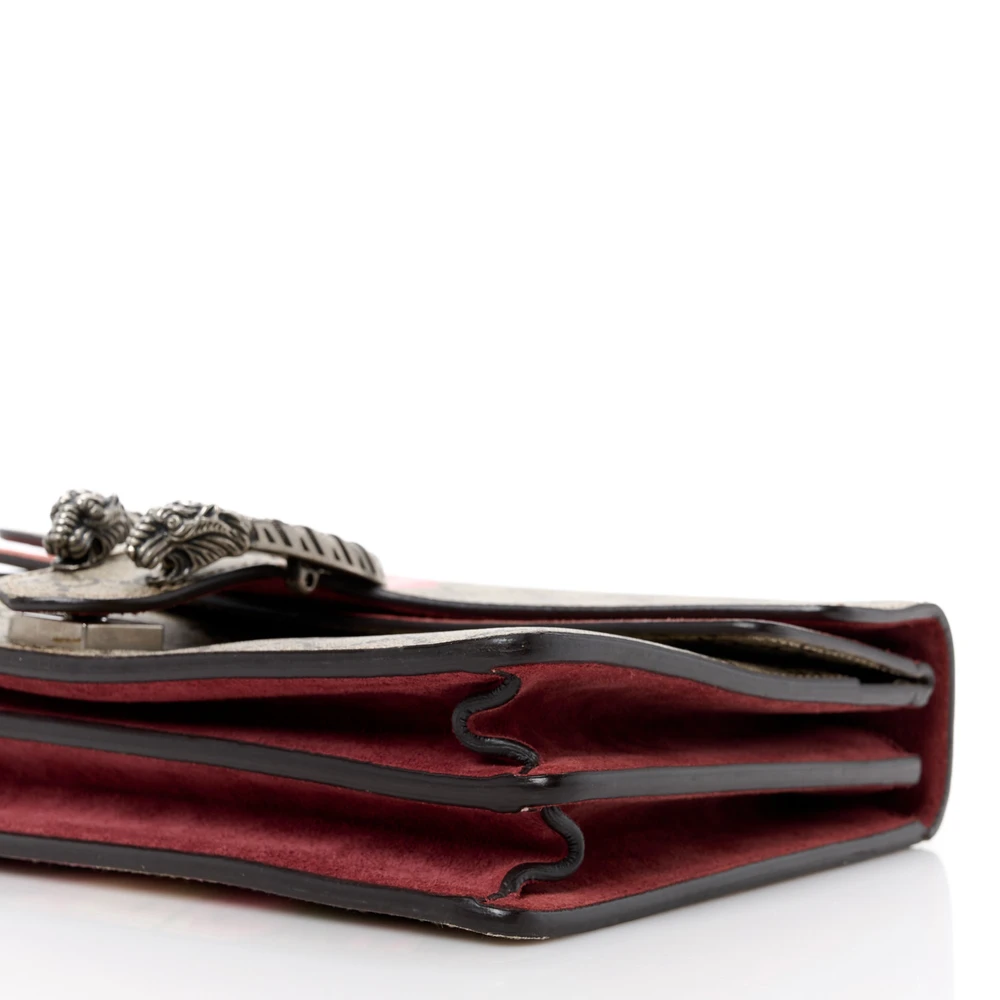 Gucci Small Dionysus Shoulder Bag Red GG Supreme Monogram Coated Canvas Aged Silver Hardware