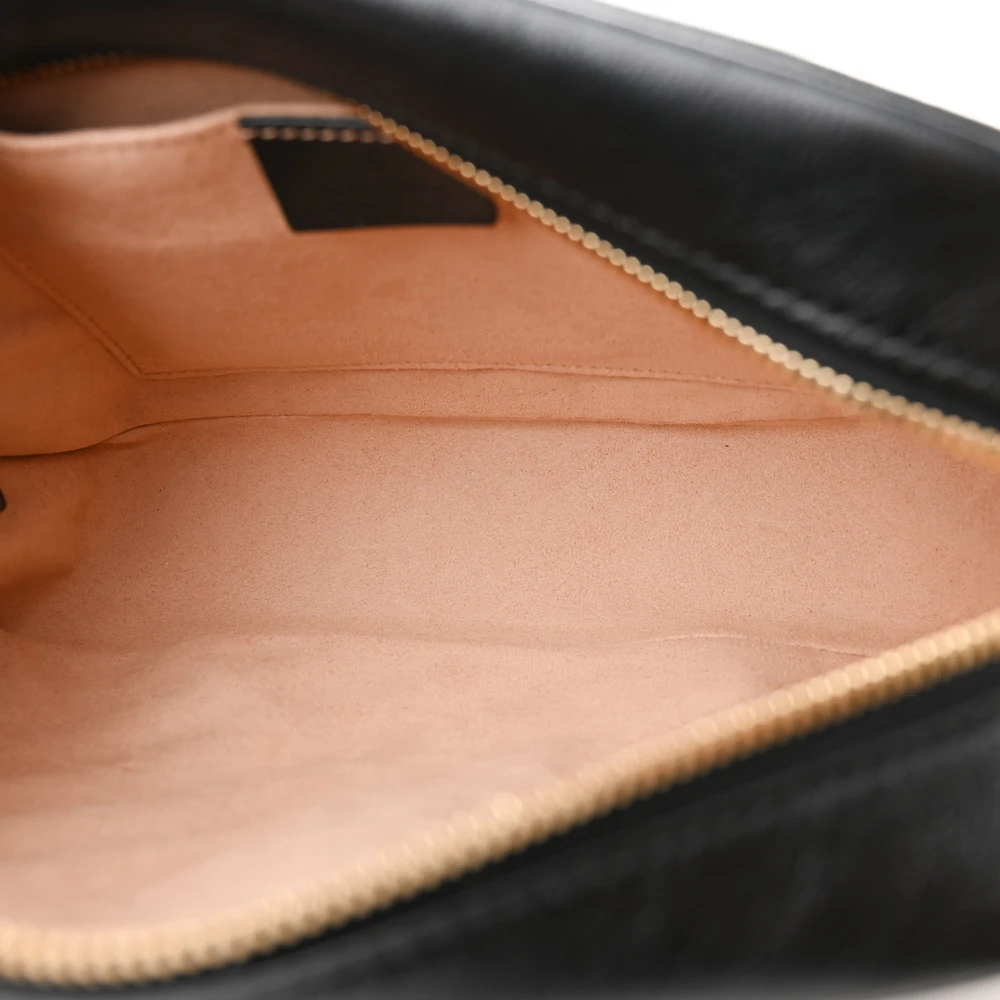 Gucci Small GG Marmont Chain Shoulder Bag Black Calfskin Leather Black Hardware