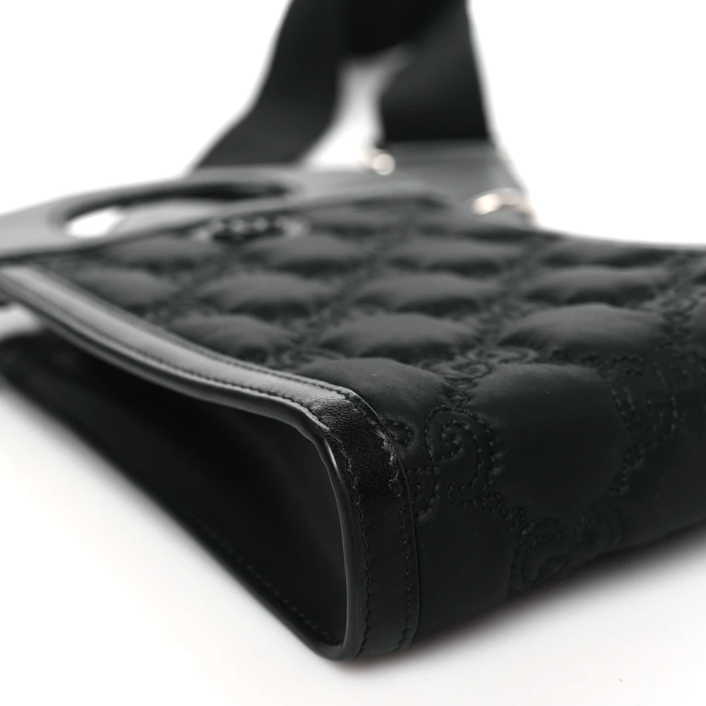 Gucci Mini Top Slip Handle Crossbody Bag Black Nylon & GG Enamel Calfskin Matelassé Leather Black Hardware