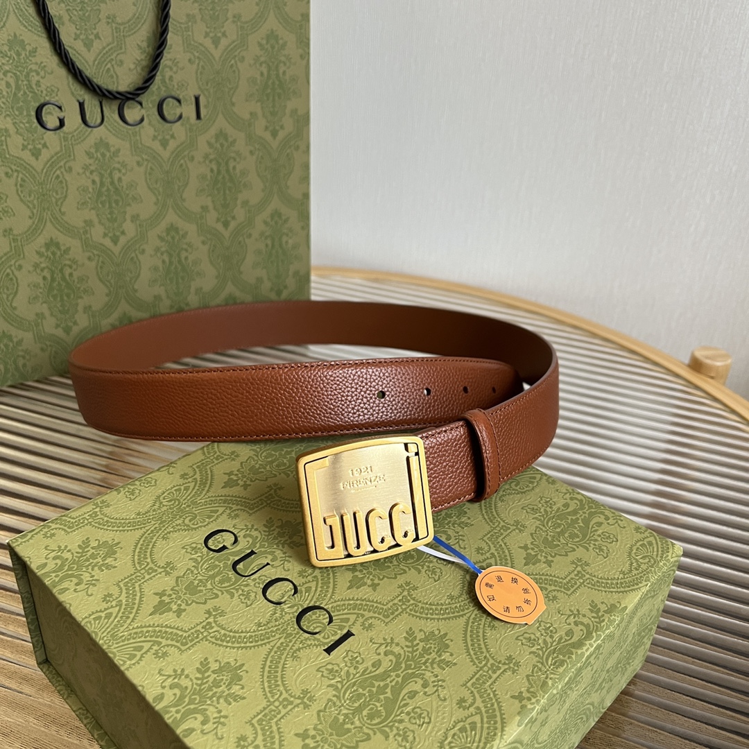 Gucci Men’s Plaque Buckle Belt In Black/Brown Grained Calfskin With Gold/Silver Hardware 35mm