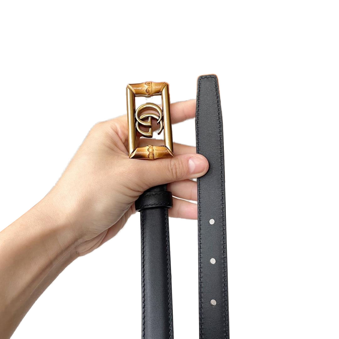 Gucci Women’s Square GG Buckle Belt In Black/Khaki/White Smooth Calfskin With Gold Hardware 20mm