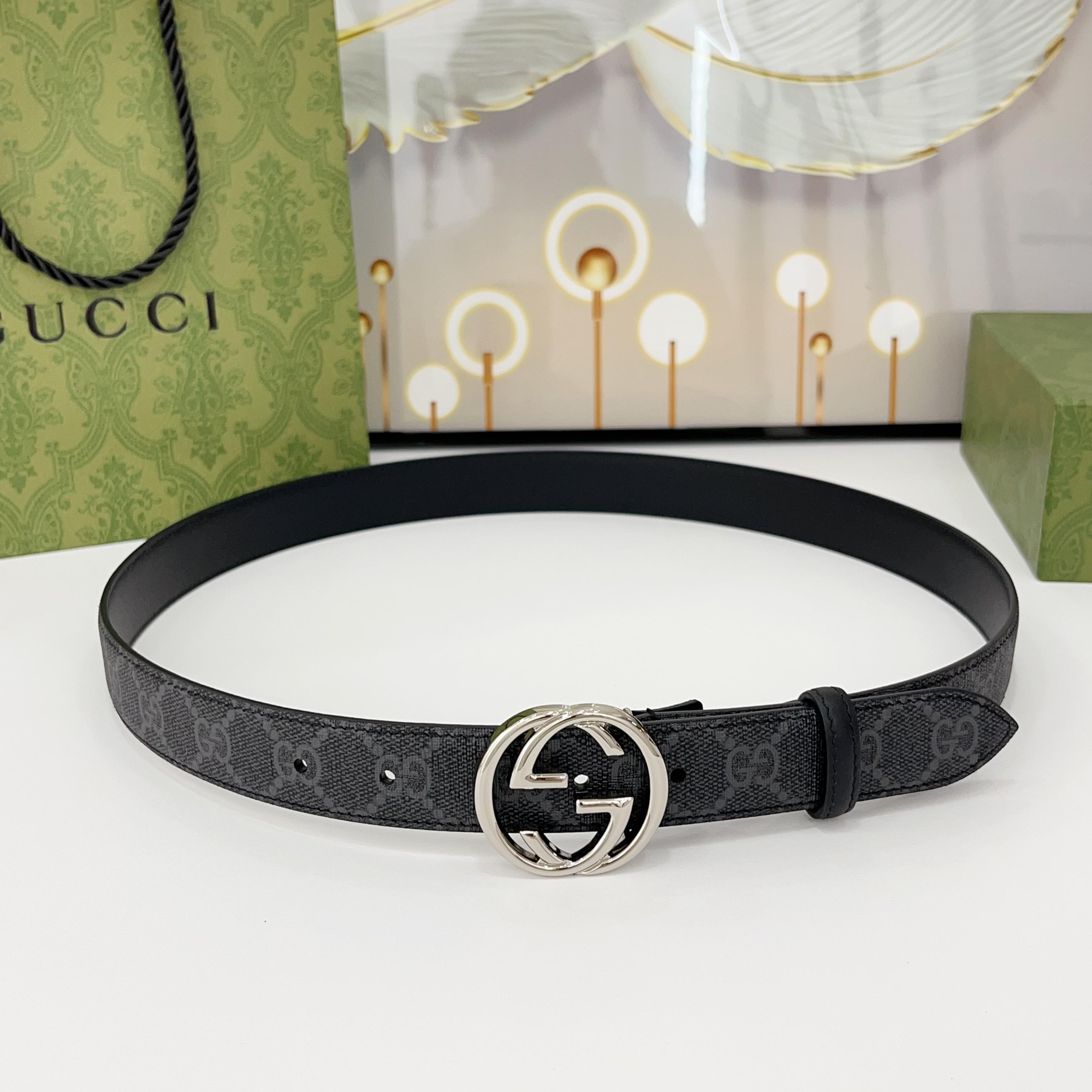 Gucci Men’s Interlocking G Buckle Belt In Black GUCCI Marmont Canvas With Gold/Silver/Gun Black/Black Hardware 40mm