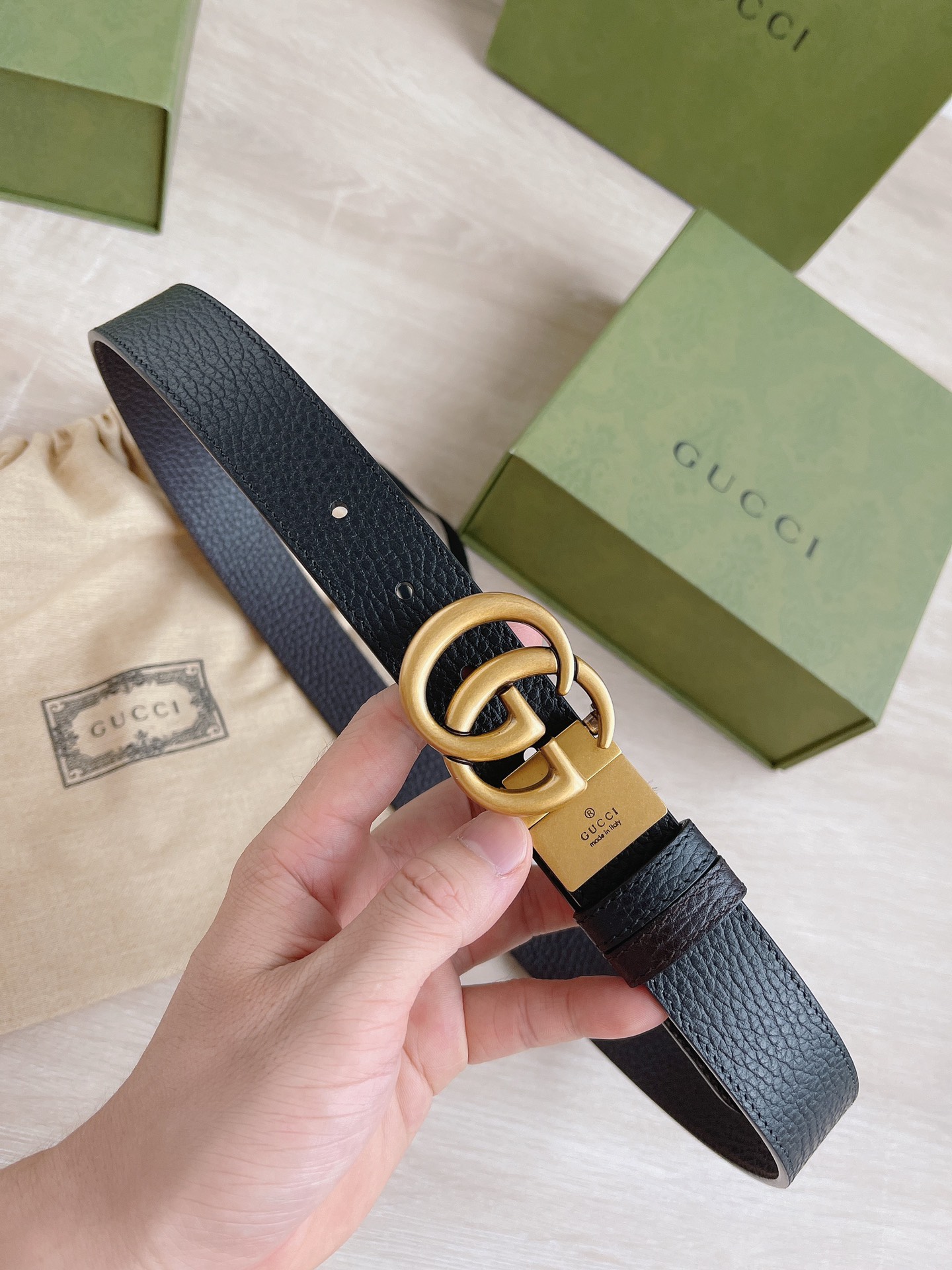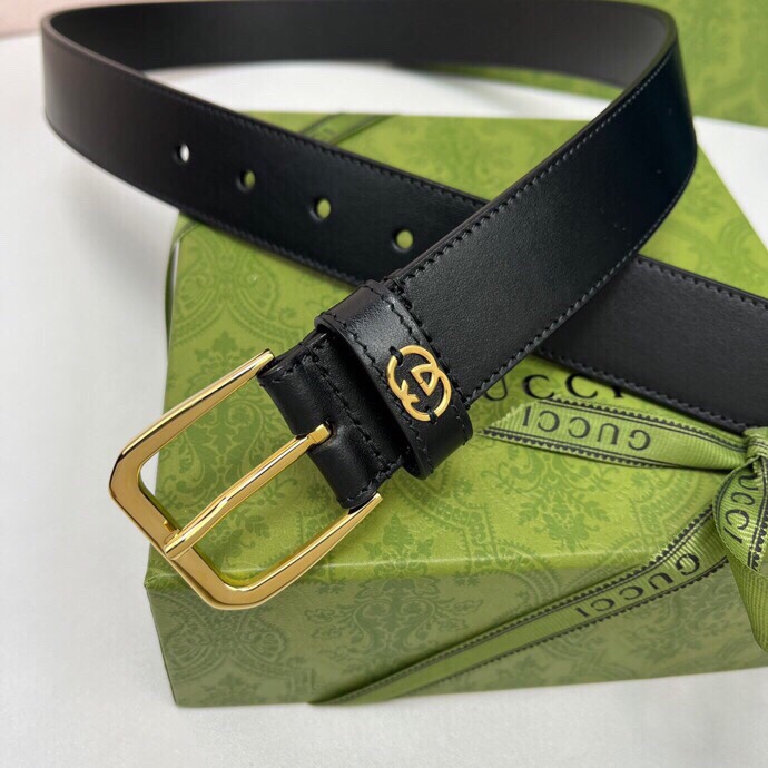Gucci Women’s Double G Buckle Belt In Black Grained Calfskin With Gold Hardware 30mm