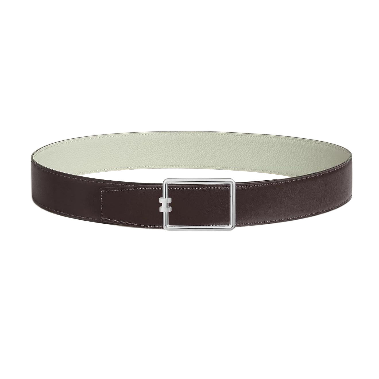 Hermès Men’ s Tube H Buckle Reversible Belt In Brown/White Evercolor Calfskin With Gold/Silver Hardware 38mm