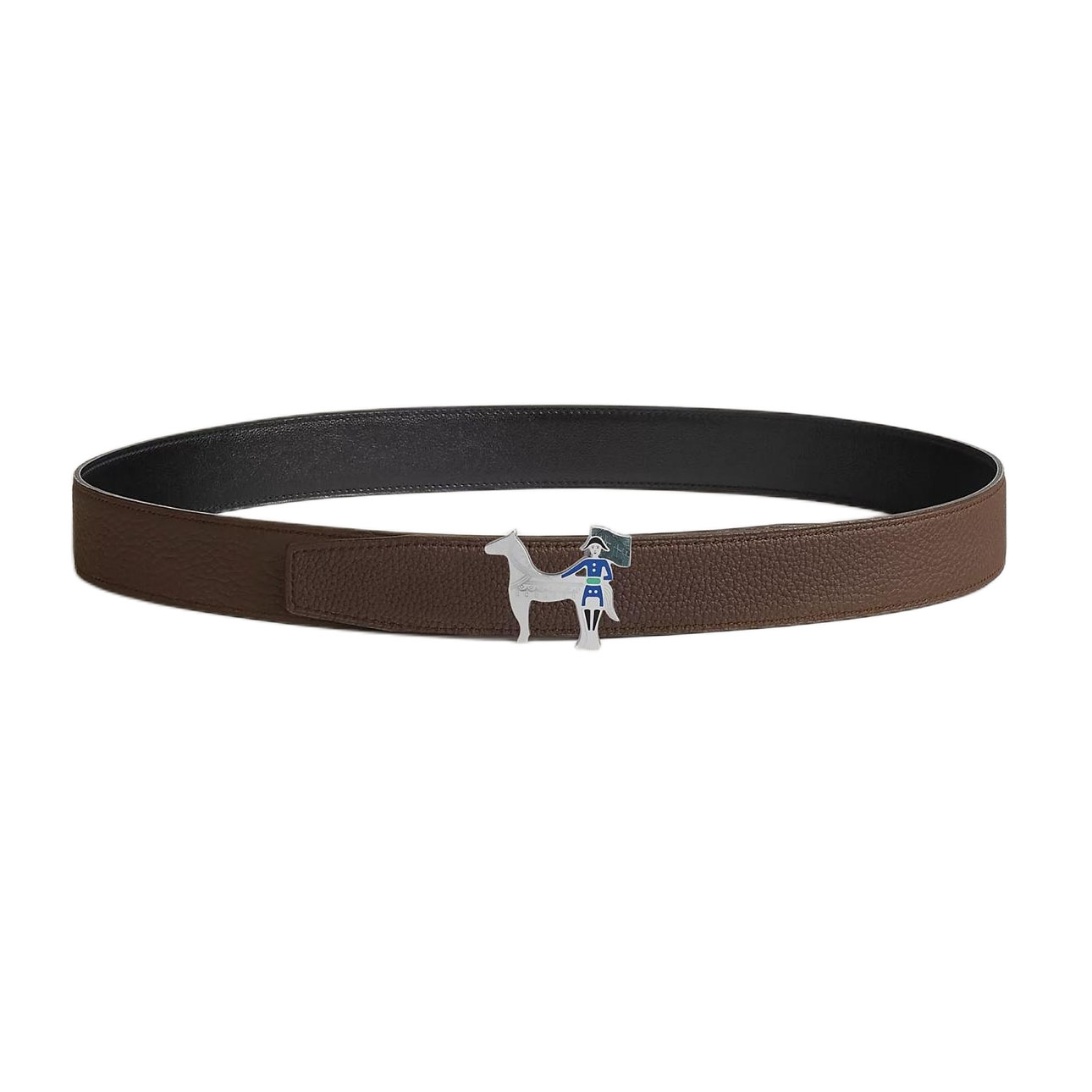 Hermès Women’ s Artificier Buckle Reversible Belt In Black/Brown/Etoupe/Coffee/Blue Calfskin With Silver Hardware 32mm